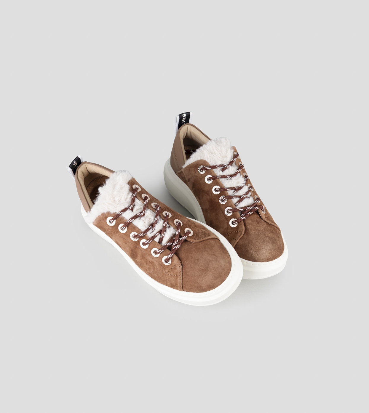 Wembley Donna in suede marrone e fodera in eco-pelliccia bianca