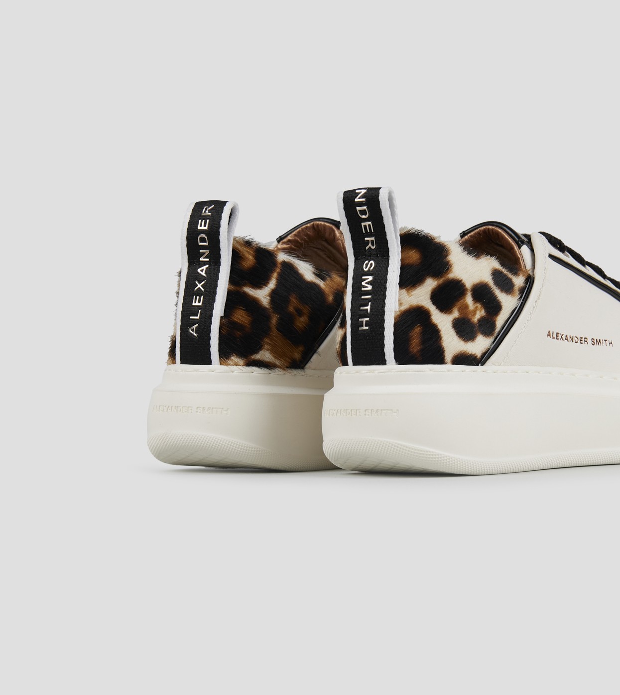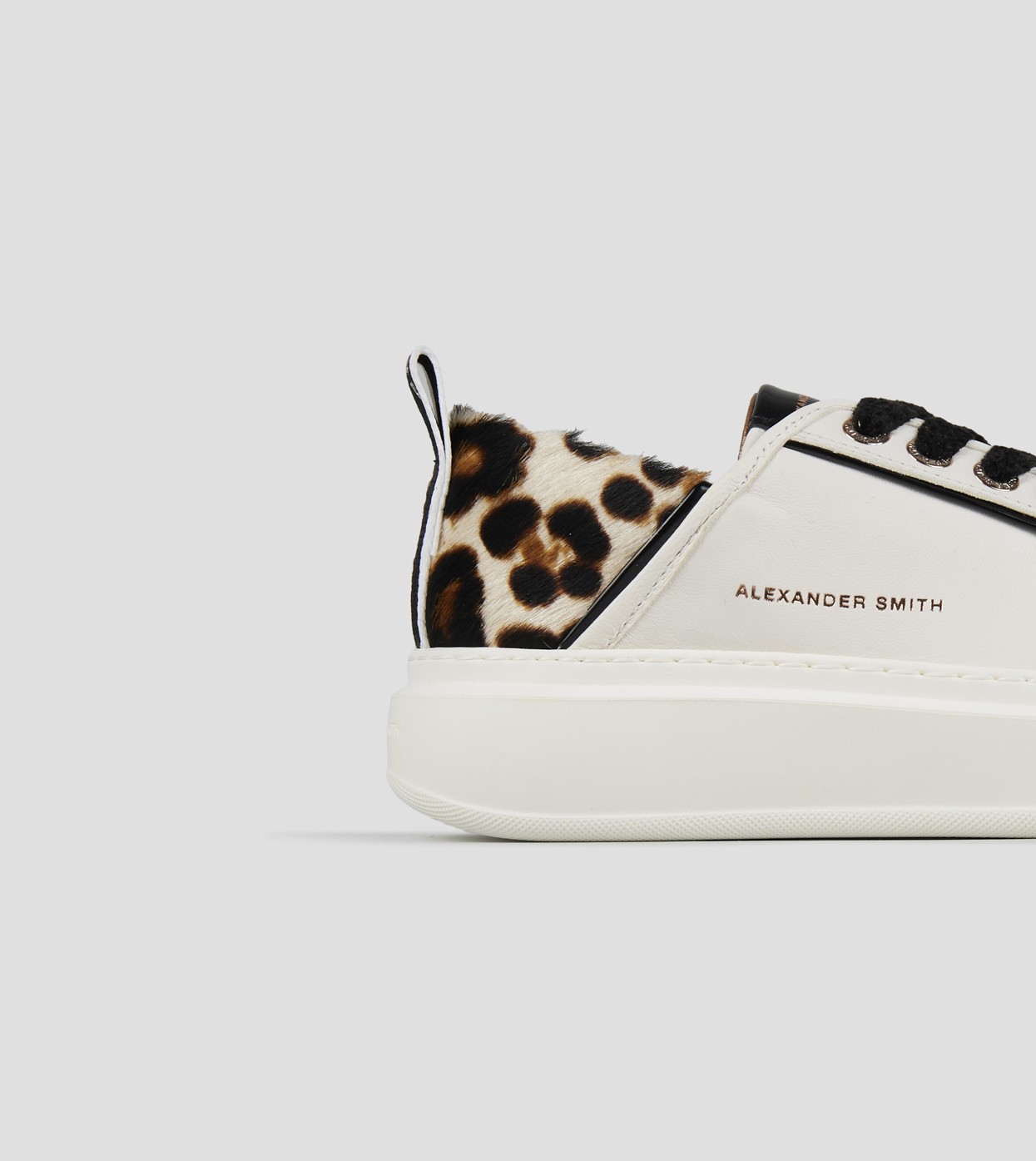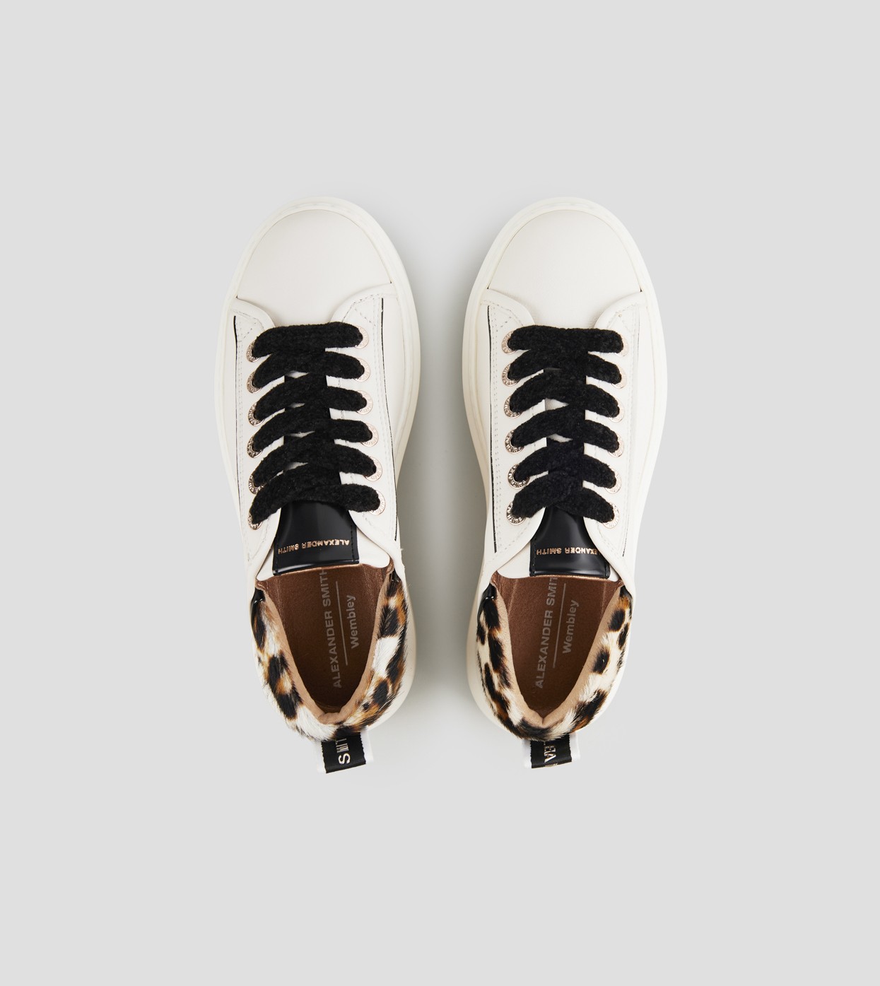 Wembley Donna in pelle bianca e tallone in cavallino maculato
