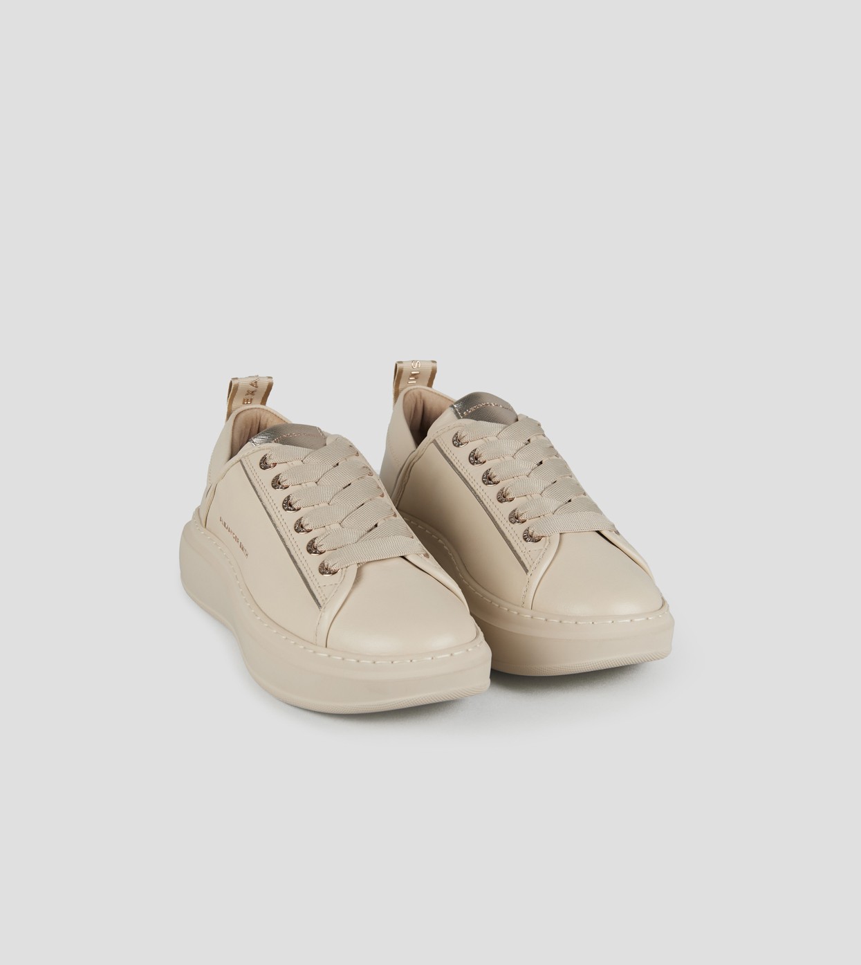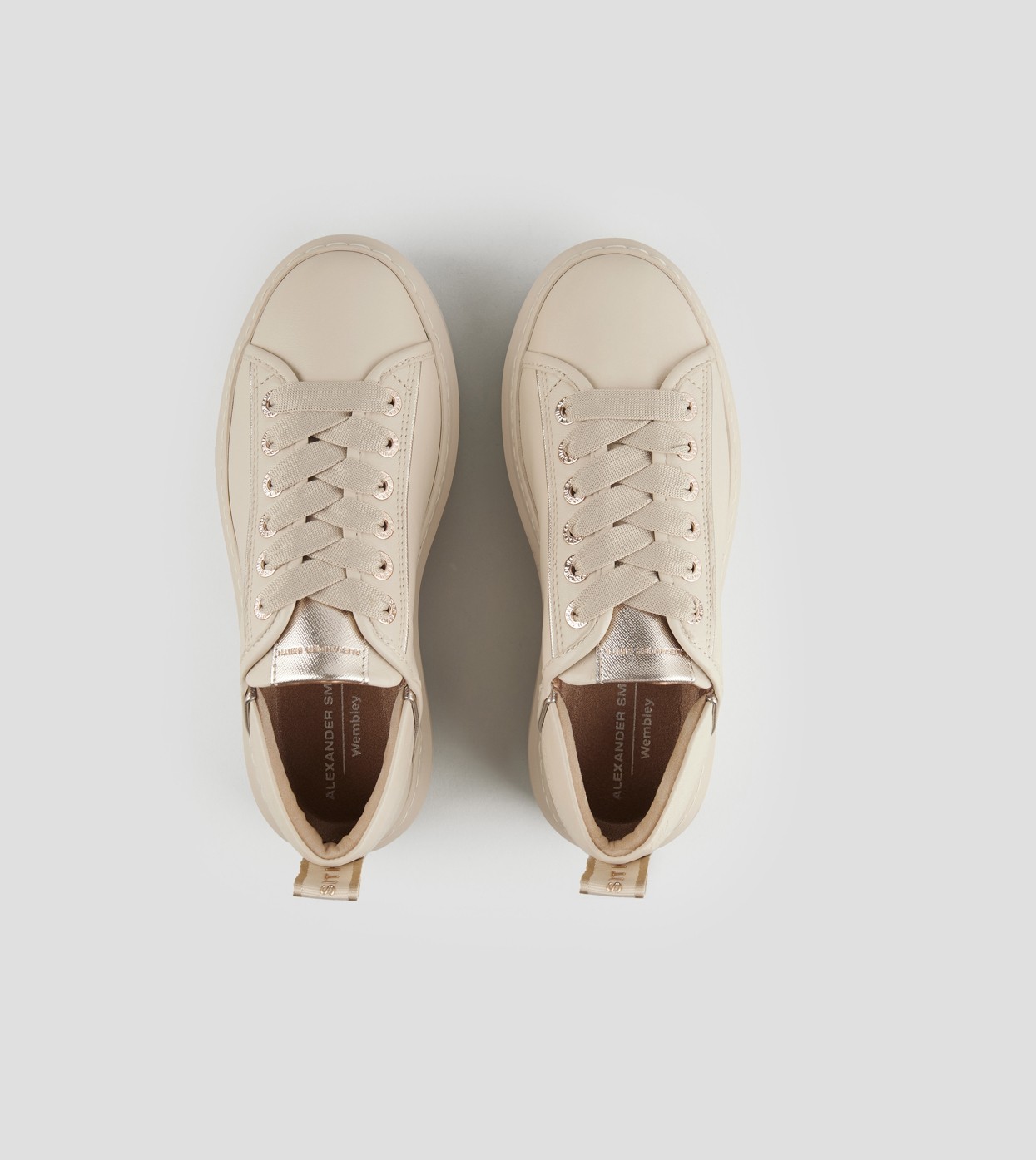 Il riferimento al famoso stadio inglese è chiaro: sportività ed eleganza si fondono per dare vita a questo modello. Le Wembley rappresentano l’equilibrio tra comodità, stile e sobrietà, ai quali si aggiunge modernità grazie ai dettagli unici che fanno la differenza, in questa versione in morbide pelle beige e suola in tinta.