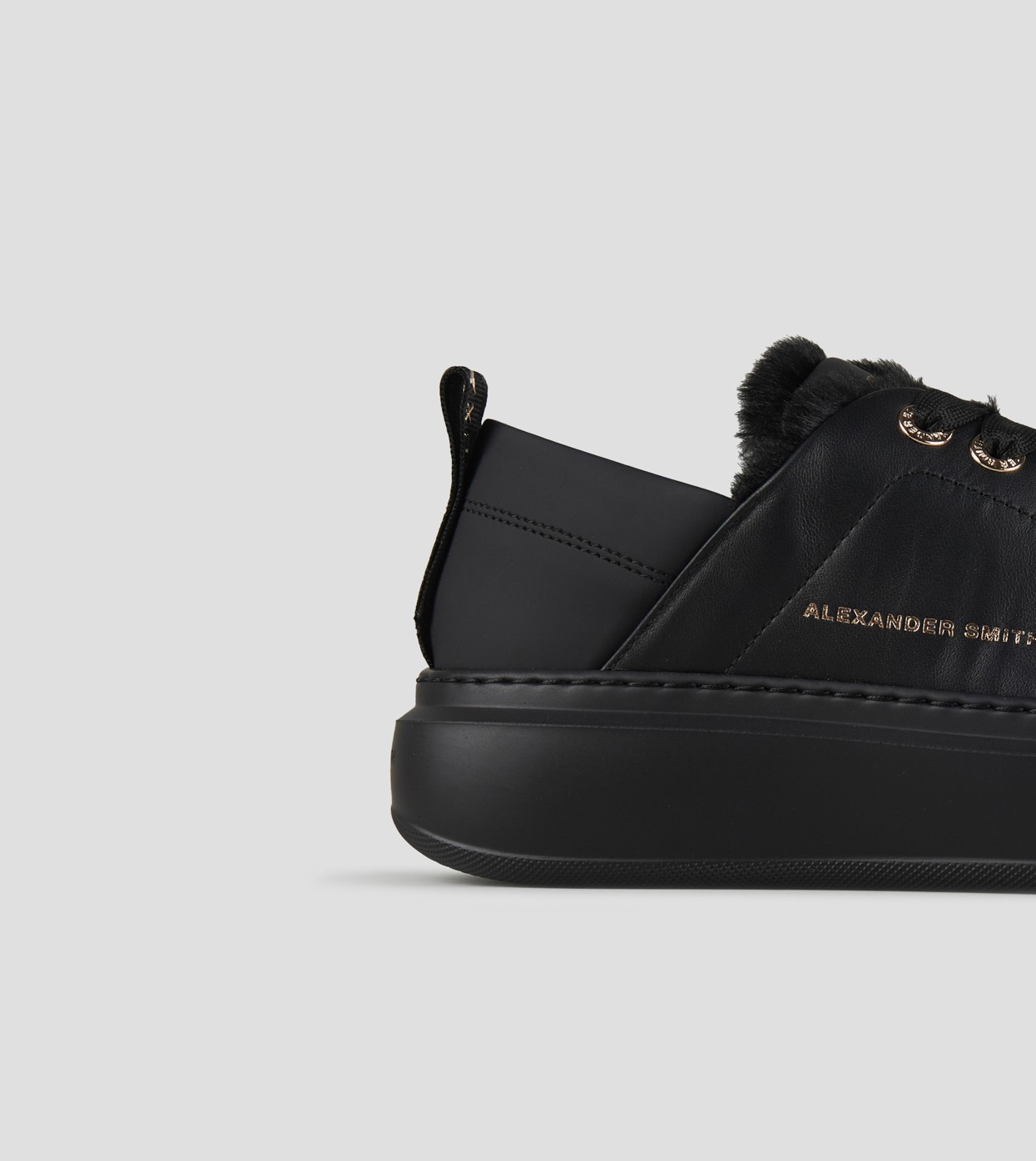 Wembley Donna in pelle nera con fodera in eco-pelliccia e suola nera