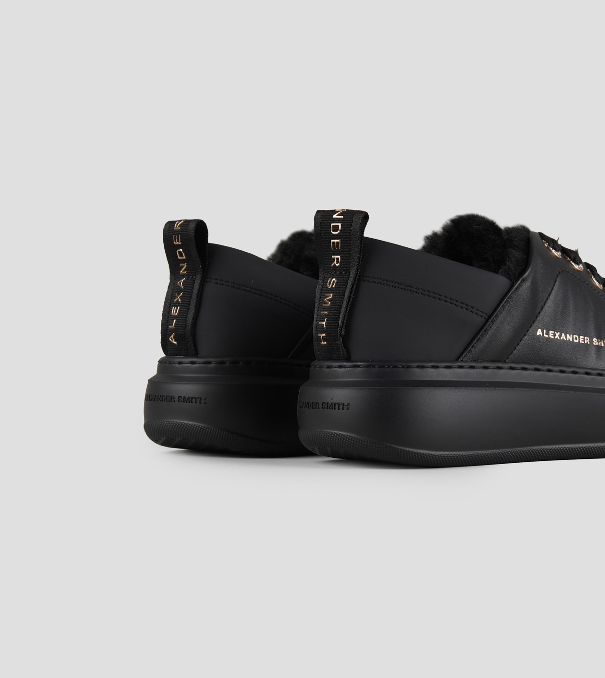 Il riferimento al famoso stadio inglese è chiaro: sportività ed eleganza si fondono per dare vita a questo modello. Le Wembley rappresentano l’equilibrio tra comodità, stile e sobrietà, ai quali si aggiunge modernità grazie ai dettagli unici che fanno la differenza, in questa versione in pelle nera, fodera in eco-pelliccia nera e suola nera.