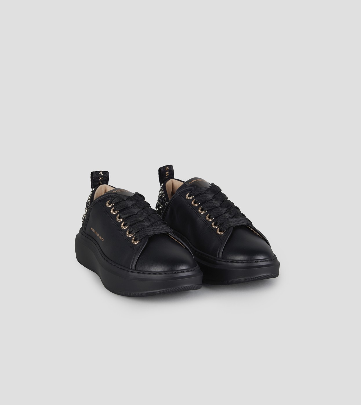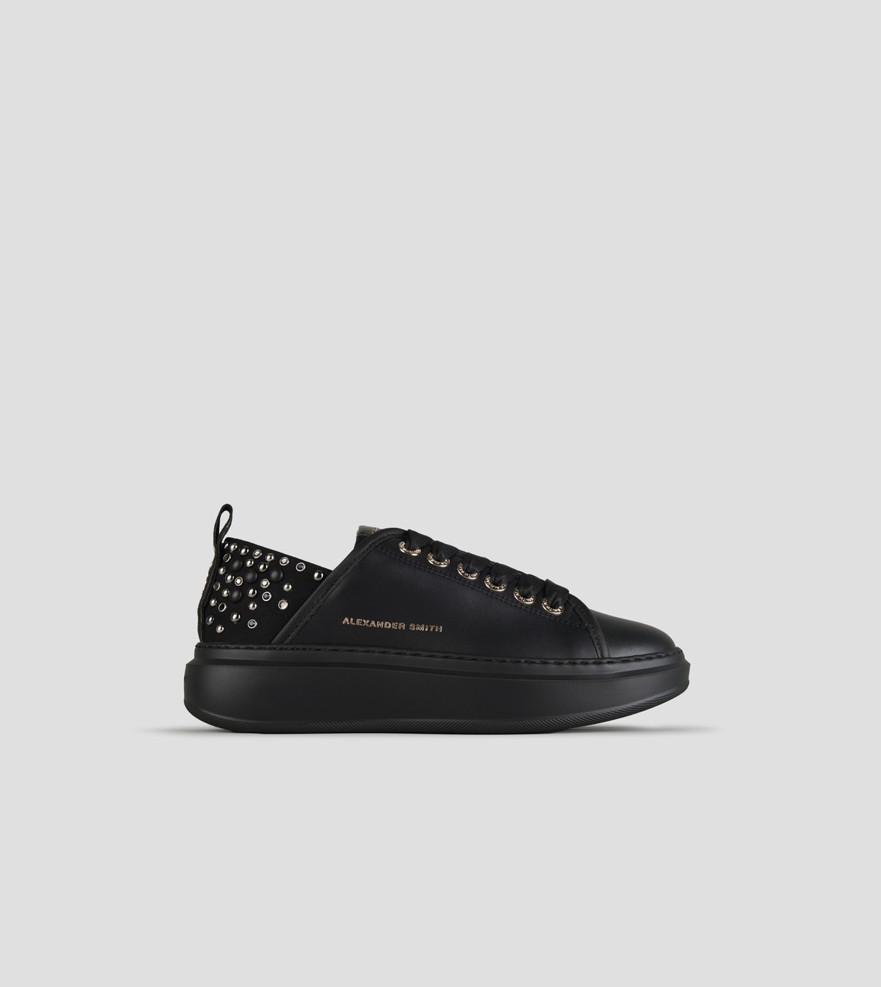 Wembley Donna in pelle nera con borchie sul tallone e suola nera