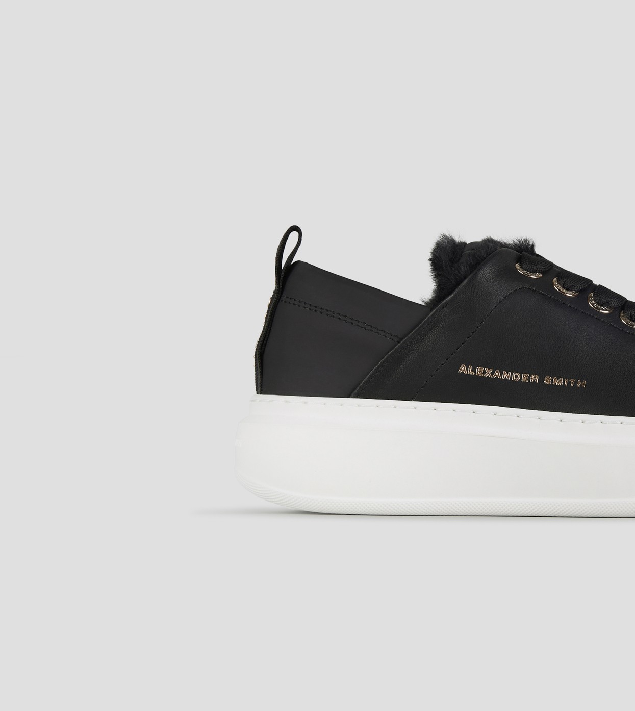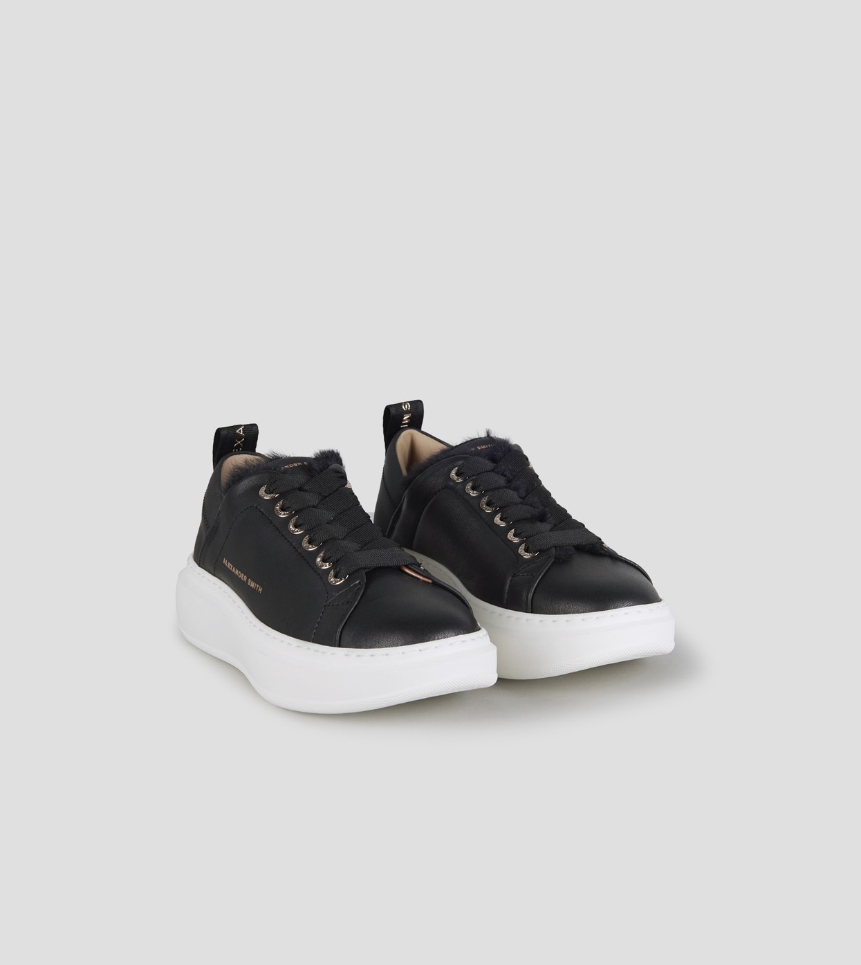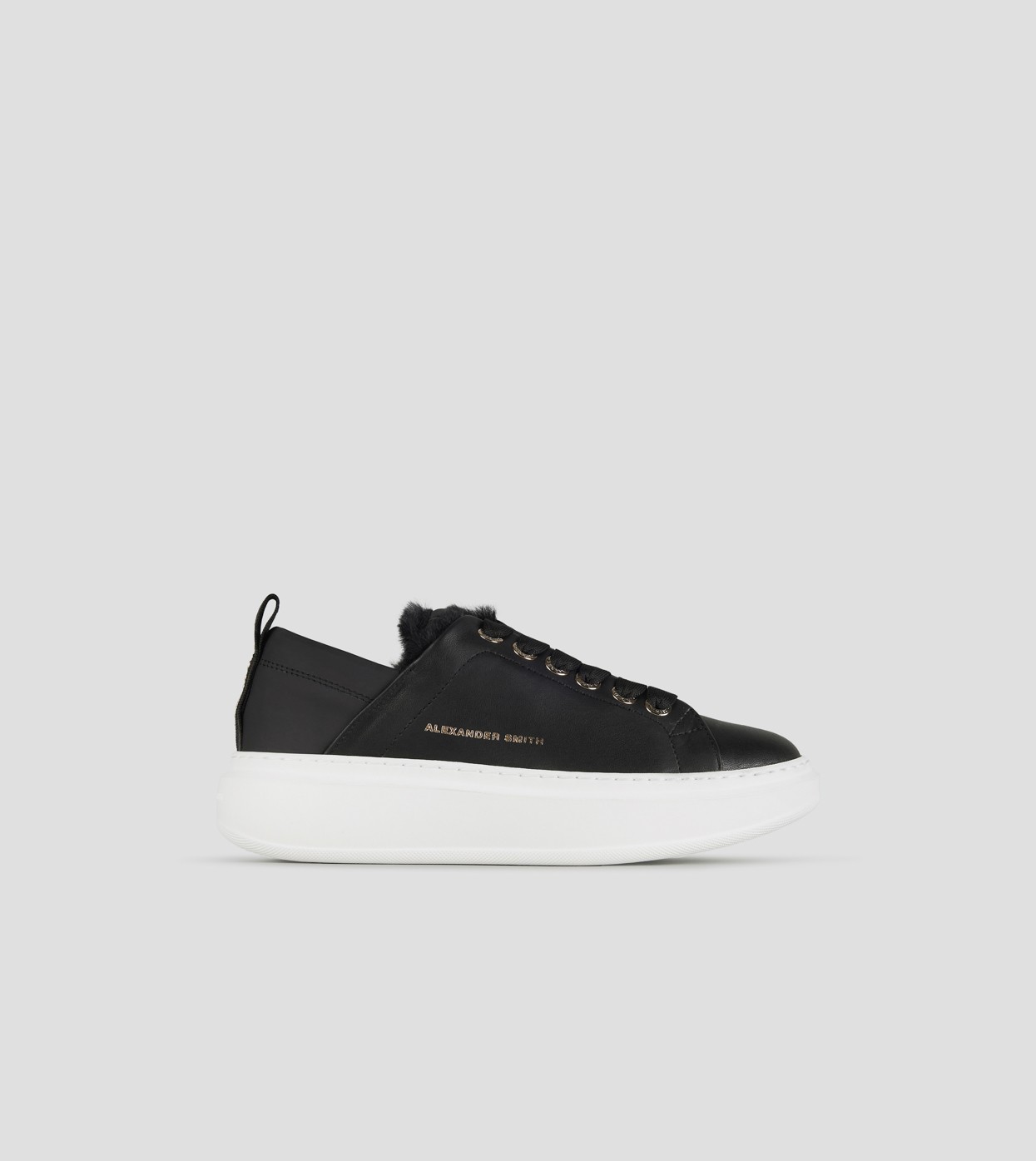Il riferimento al famoso stadio inglese è chiaro: sportività ed eleganza si fondono per dare vita a questo modello. Le Wembley rappresentano l’equilibrio tra comodità, stile e sobrietà, ai quali si aggiunge modernità grazie ai dettagli unici che fanno la differenza, in questa versione in pelle nera e fodera in eco-pelliccia nera.