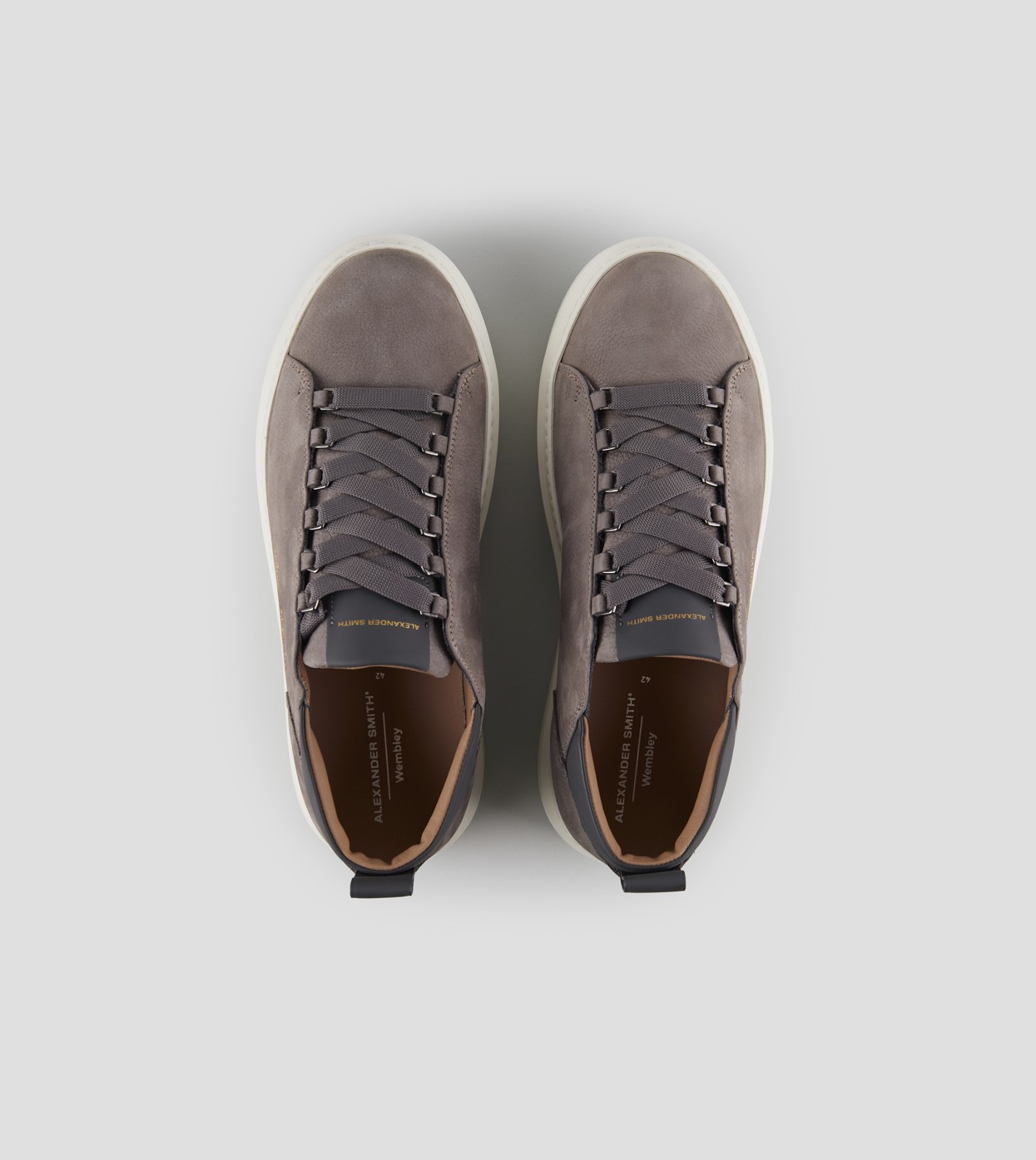 Wembley Uomo in nabuk bottalato grigio e dettagli in pelle liscia
