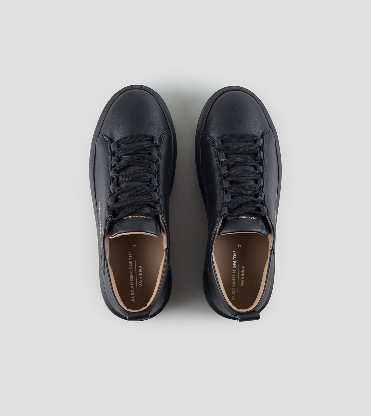 Il riferimento al famoso stadio inglese è chiaro: sportività ed eleganza si fondono per dare vita a questo modello. Le Wembley rappresentano l’equilibrio tra comodità, stile e sobrietà, ai quali si aggiunge modernità grazie ai dettagli unici che fanno la differenza, in questa variante ad alta frequenza in morbida pelle nera con suola nera.
