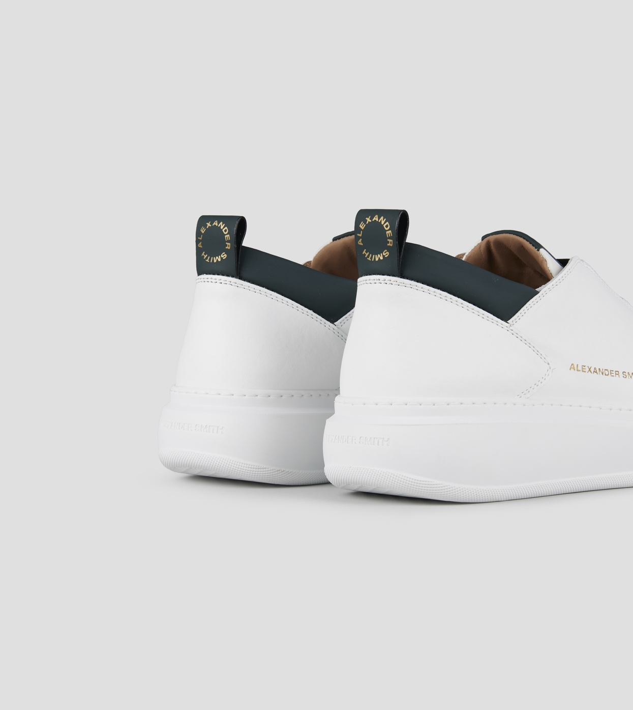 Wembley Uomo in morbida pelle bianca e dettagli verde scuro