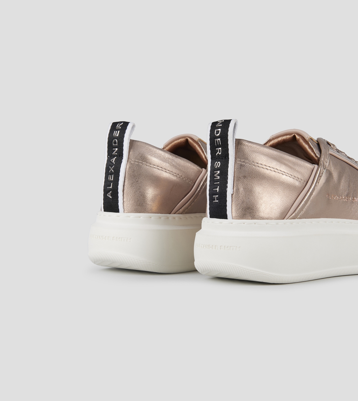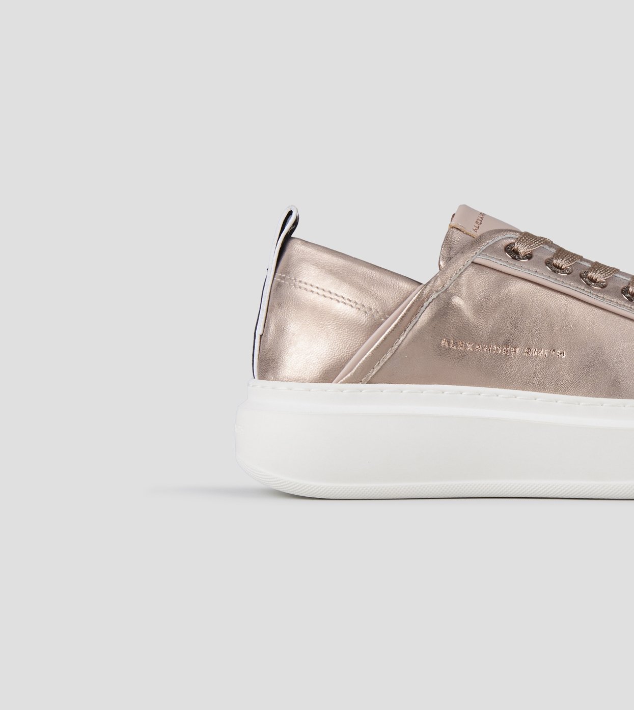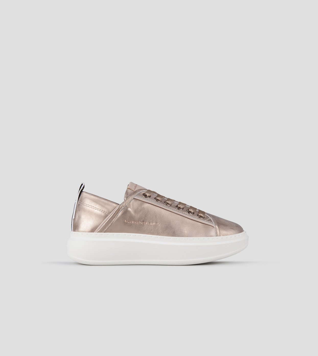Il riferimento al famoso stadio inglese è chiaro: sportività ed eleganza si fondono per dare vita a questo modello. Le Wembley rappresentano l’equilibrio tra comodità, stile e sobrietà, ai quali si aggiunge modernità grazie ai dettagli unici che fanno la differenza, in questa versione in pelle laminata color nude.