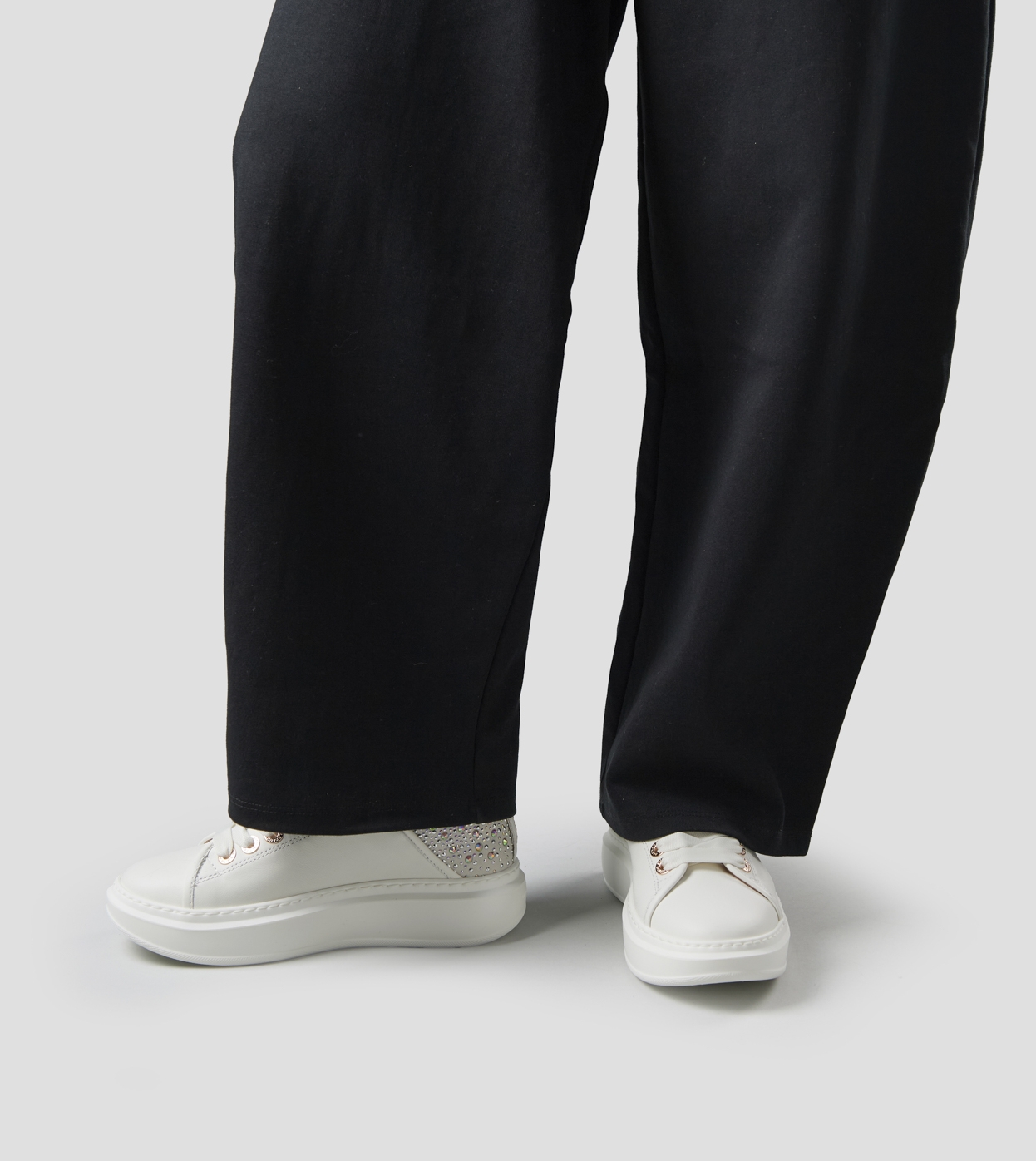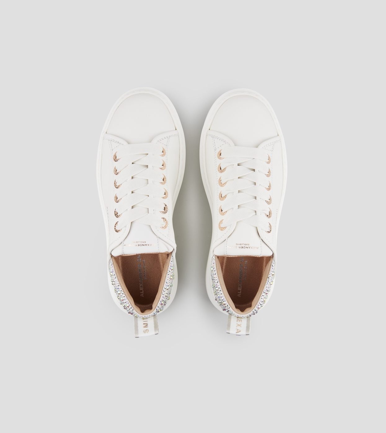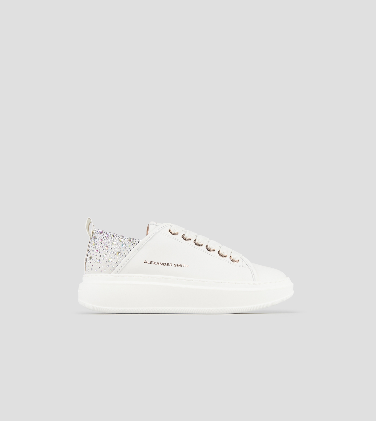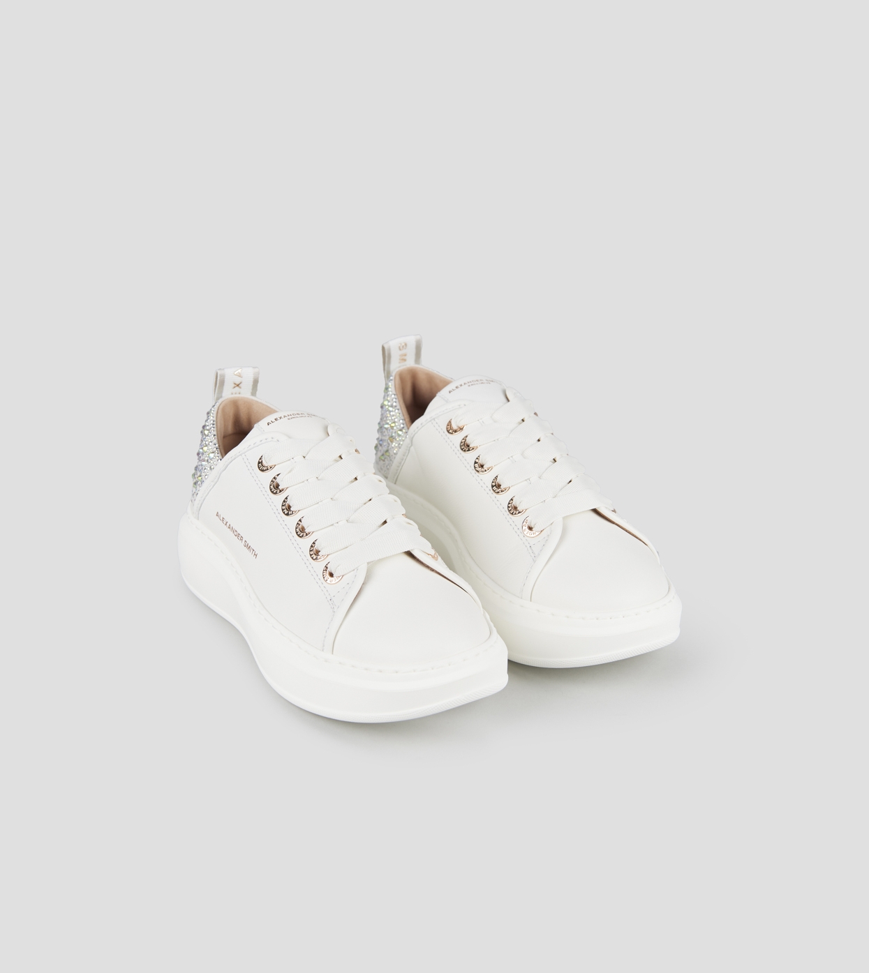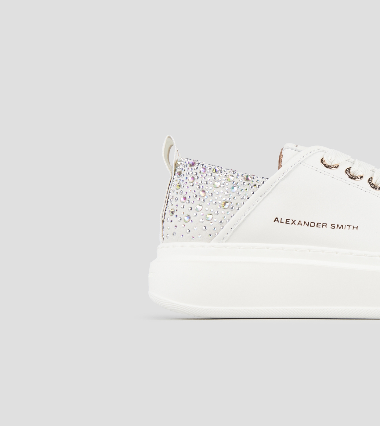 Wembley Donna in pelle bianca e tallone grigio con strass iridescenti