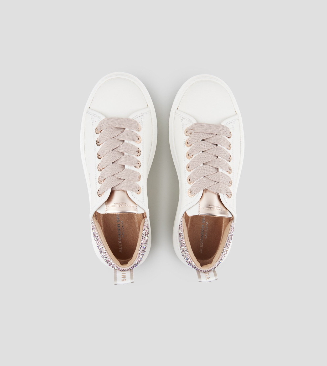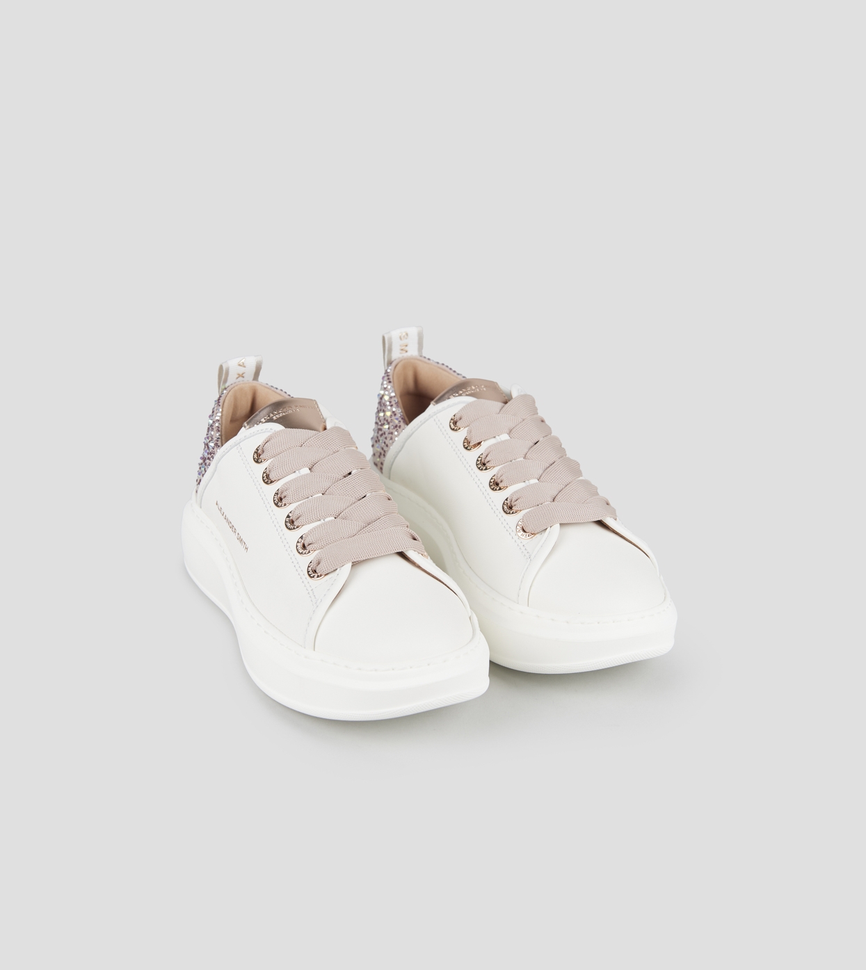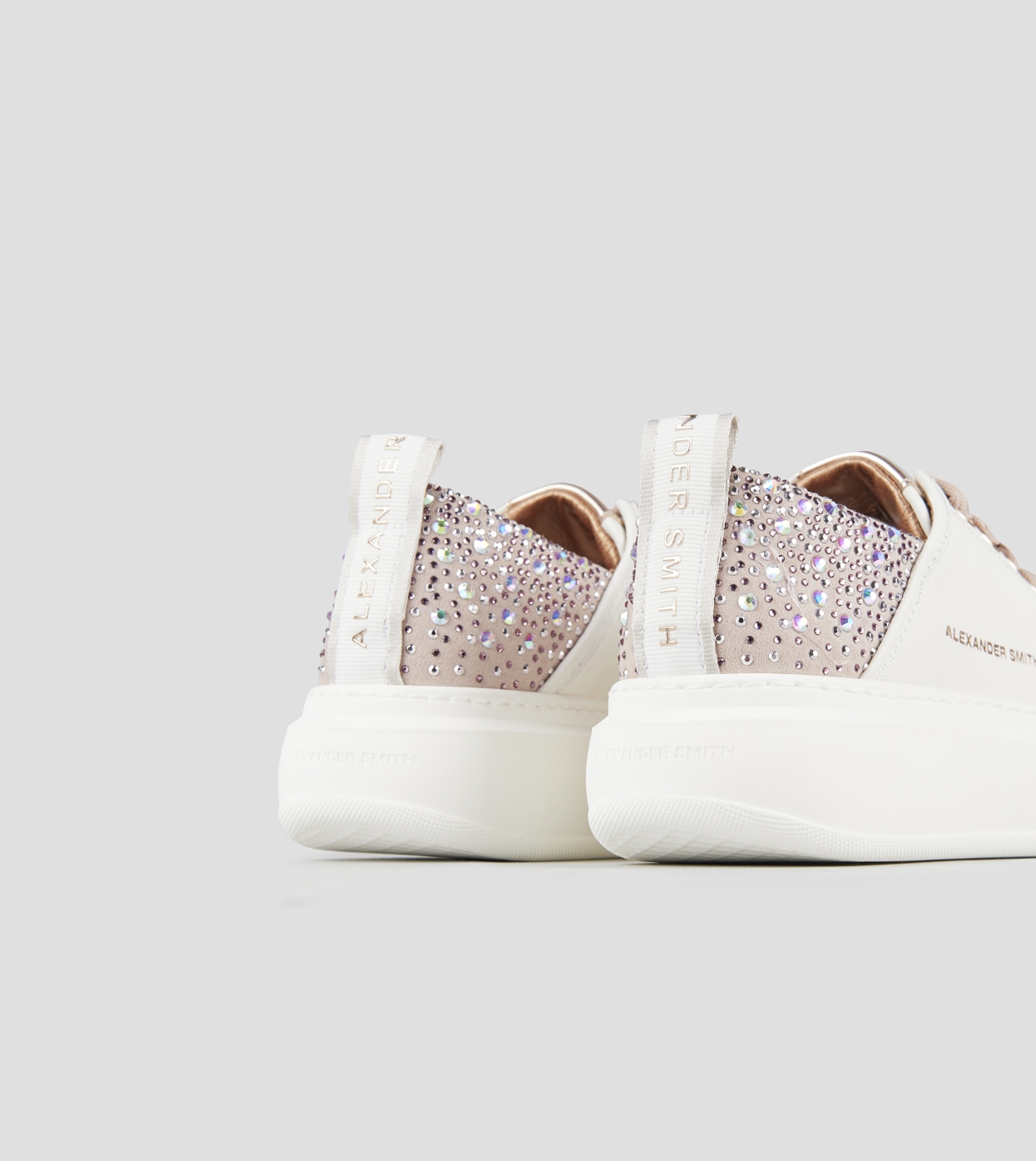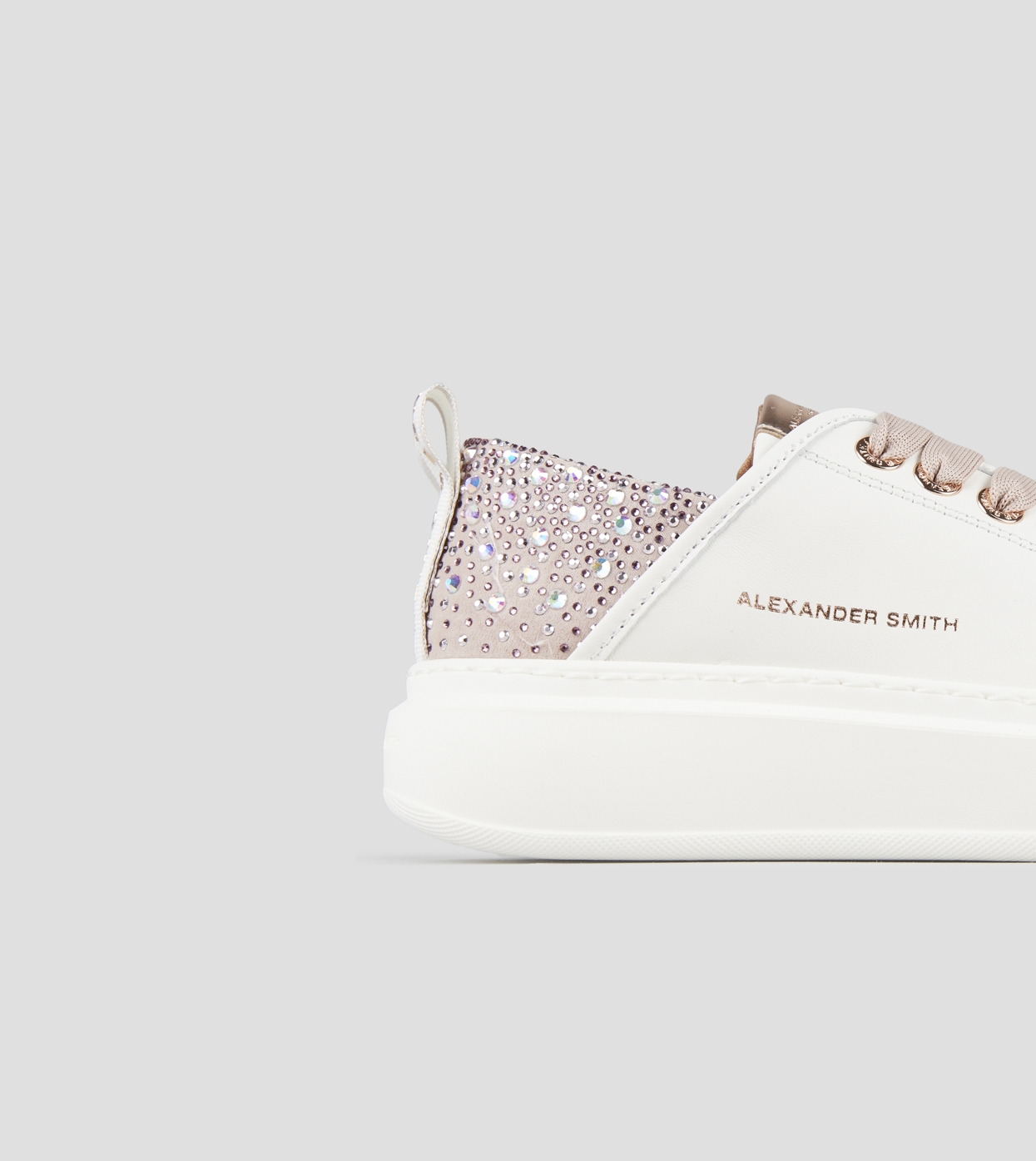 Wembley Donna in pelle liscia bianca e tallone rosa con strass