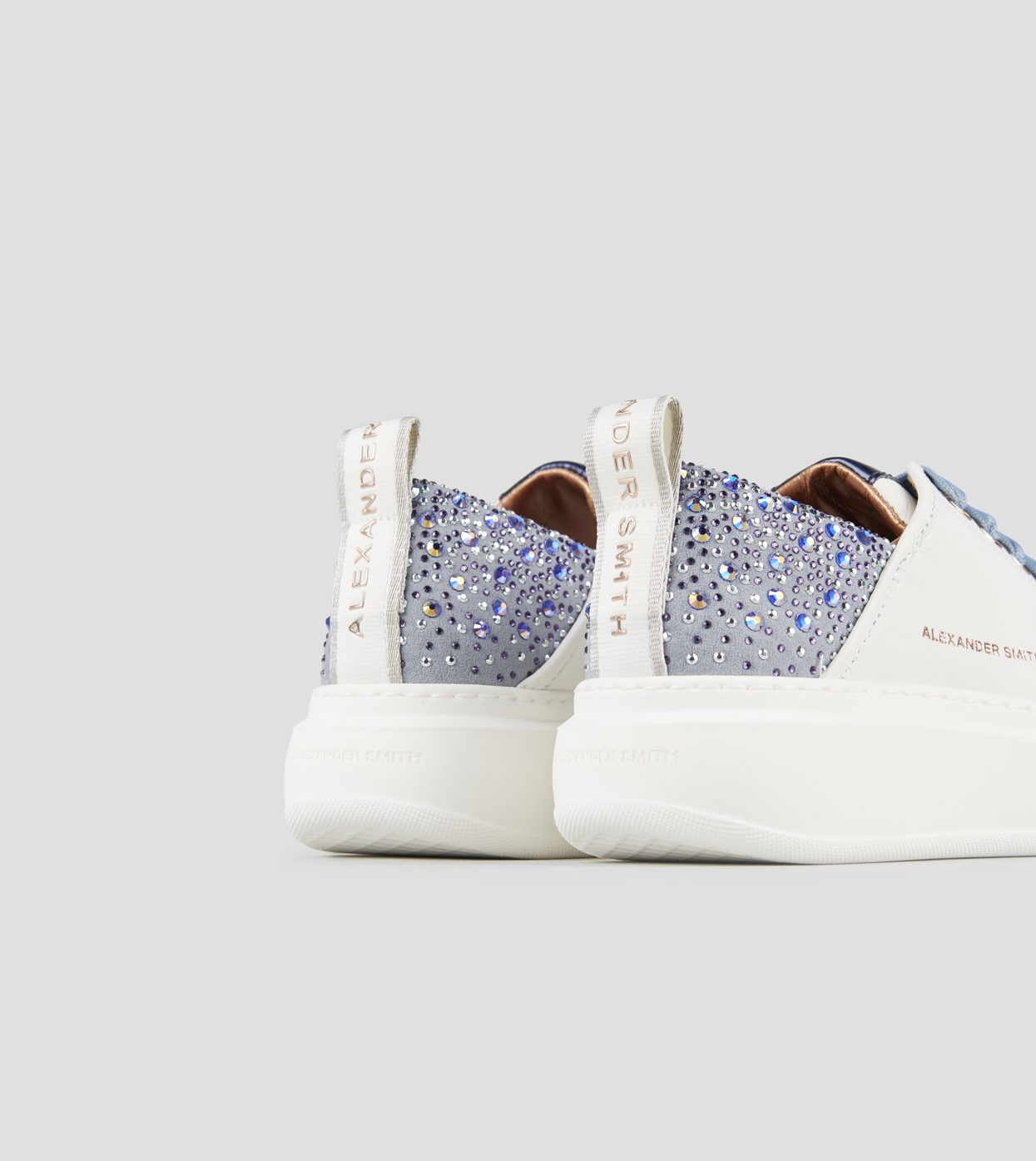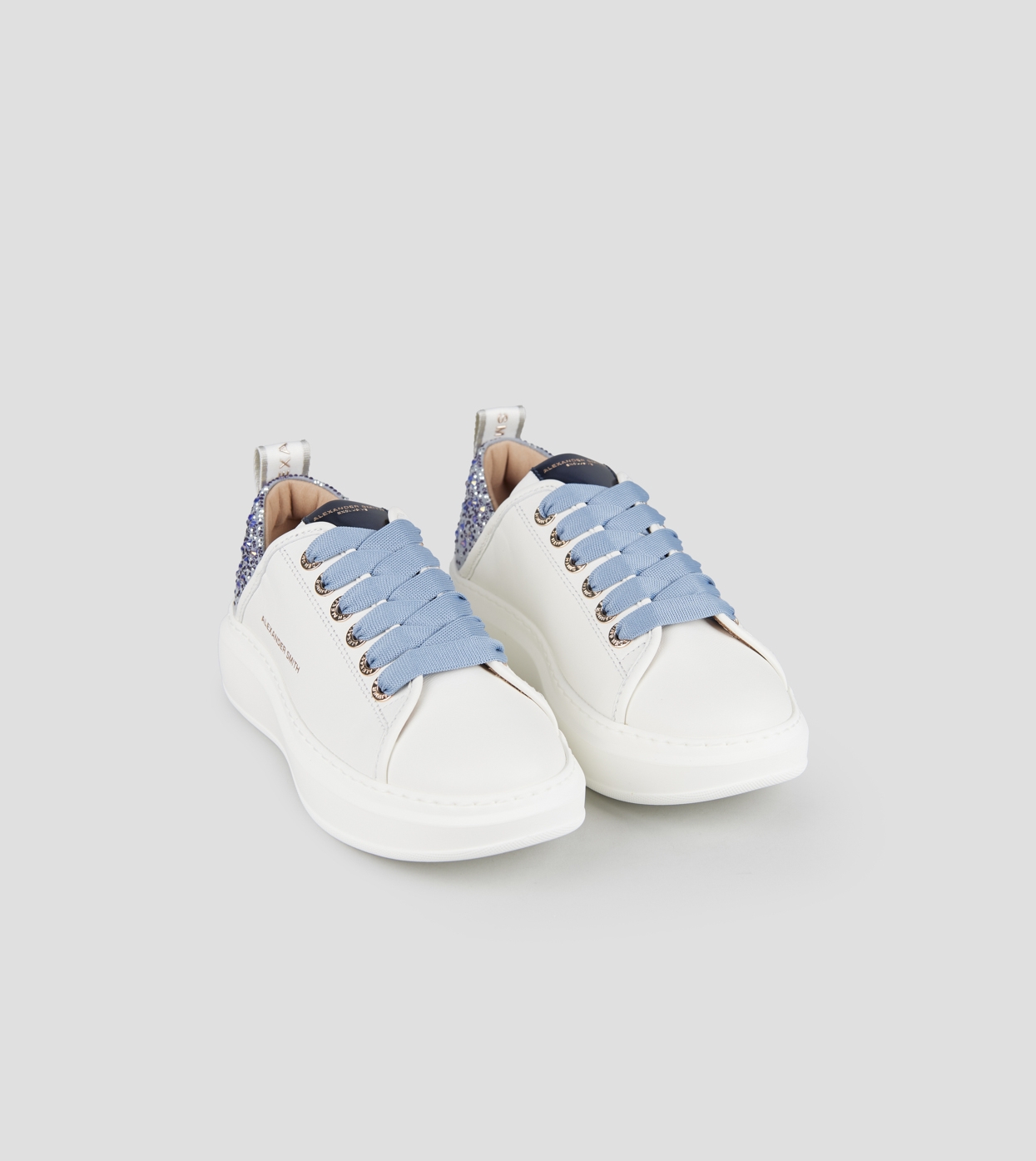 Wembley Donna in pelle bianca e tallone azzurro con strass