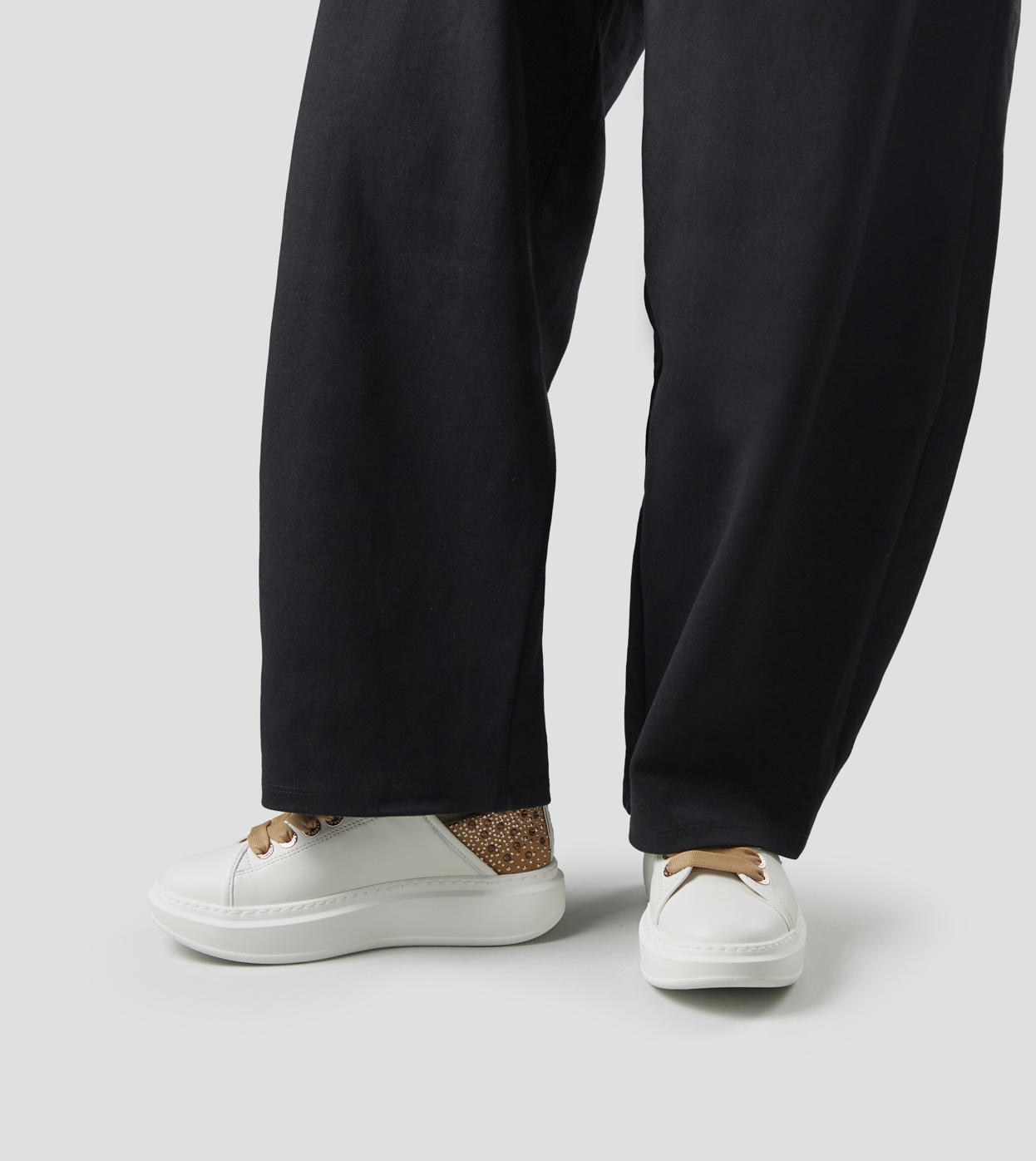 Wembley Donna in pelle bianca e tallone marrone con strass