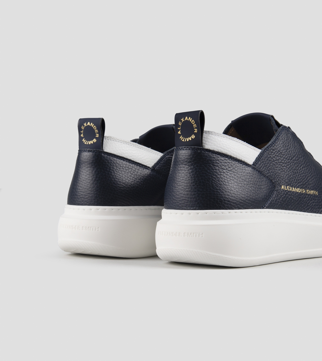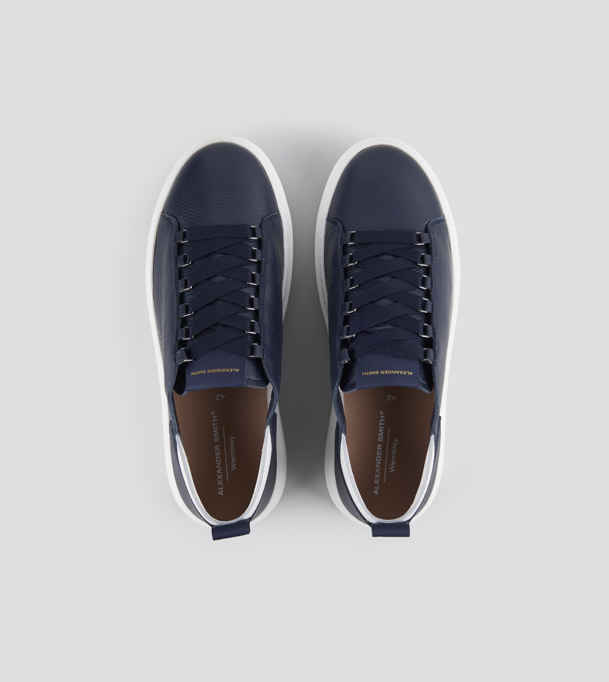 Wembley Uomo Decostruita in pelle bottalata blu e dettagli bianchi