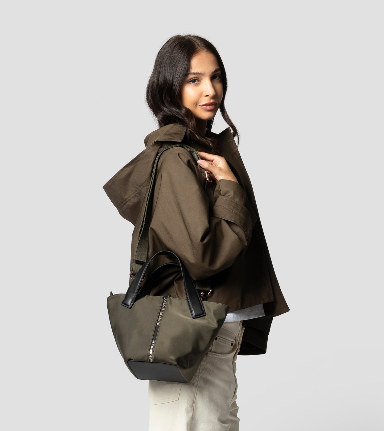 LAUREN is a shopper bag that combines functionality and style in a contemporary and bold design. The geometric lines and central logo detail define a strong yet versatile character, perfect for completing any look with a modern touch.