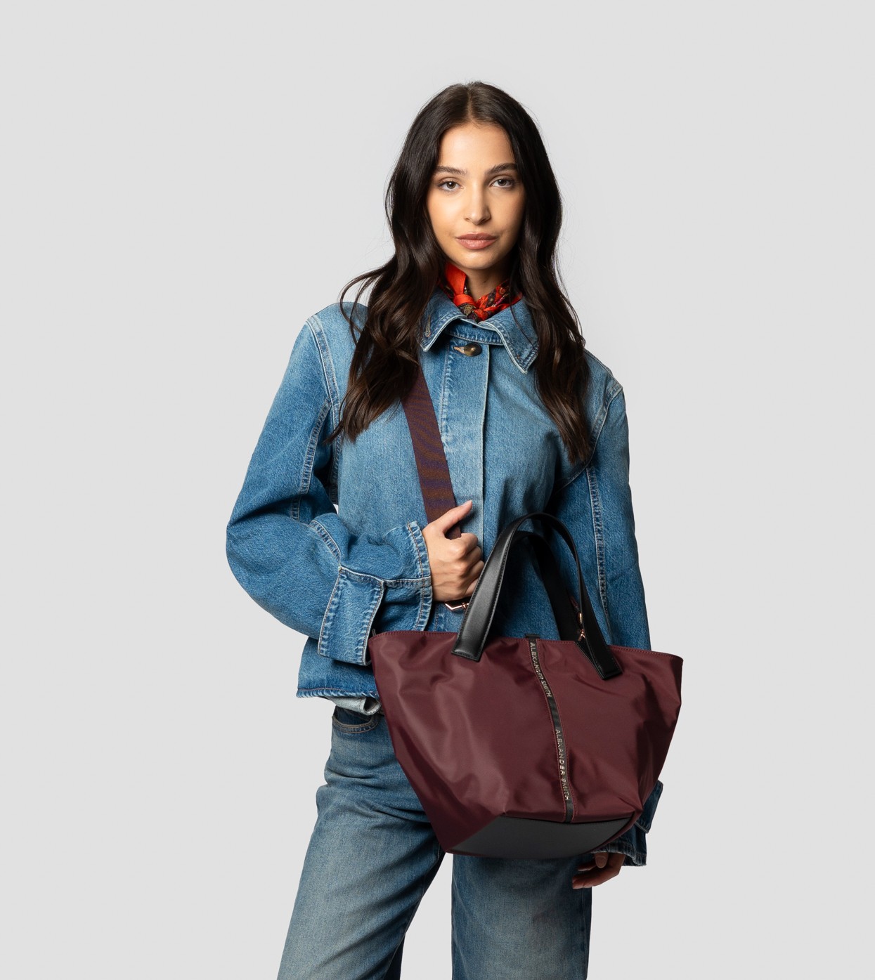 Lauren Medium handbag with shoulder strap in bordeaux nylon