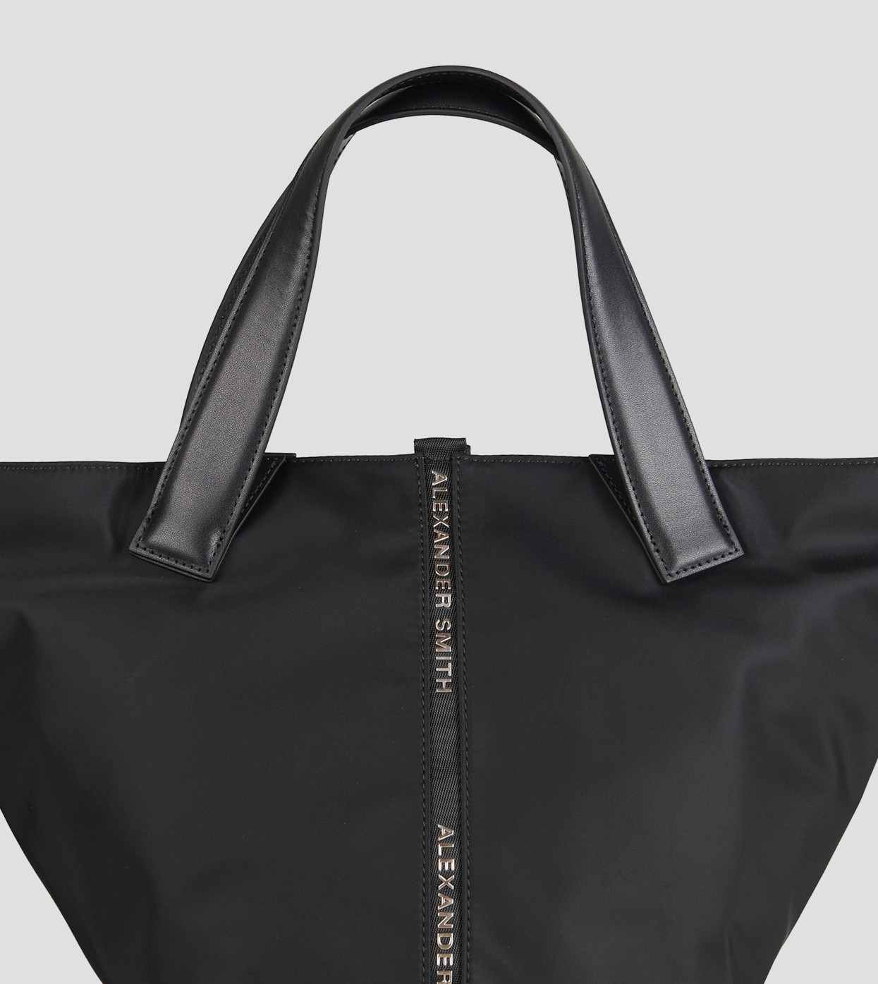 LAUREN is a shopper bag that combines functionality and style in a contemporary and bold design. The geometric lines and central logo detail define a strong yet versatile character, perfect for completing any look with a modern touch.