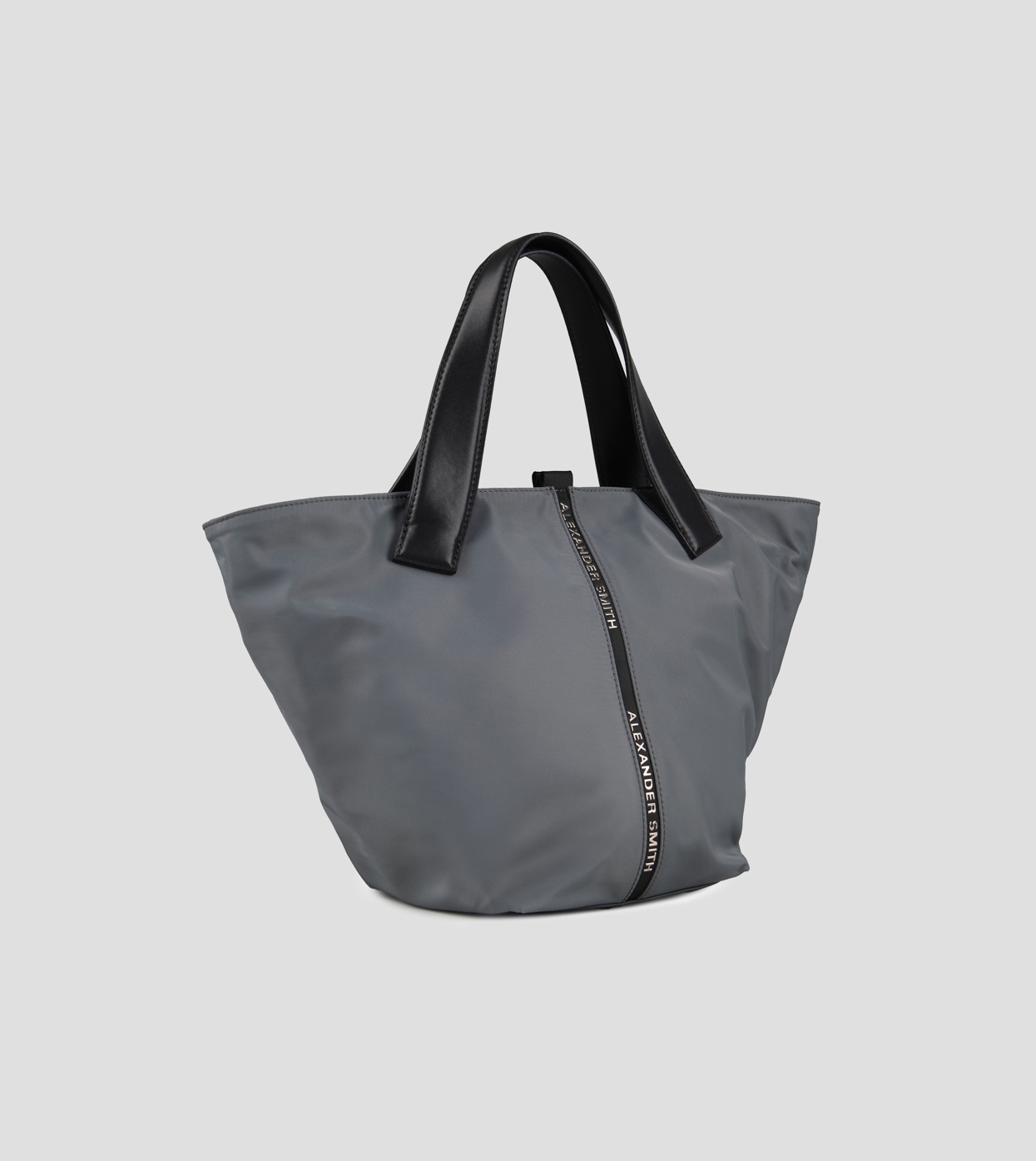 LAUREN is a shopper bag that combines functionality and style in a contemporary and bold design. The geometric lines and central logo detail define a strong yet versatile character, perfect for completing any look with a modern touch.