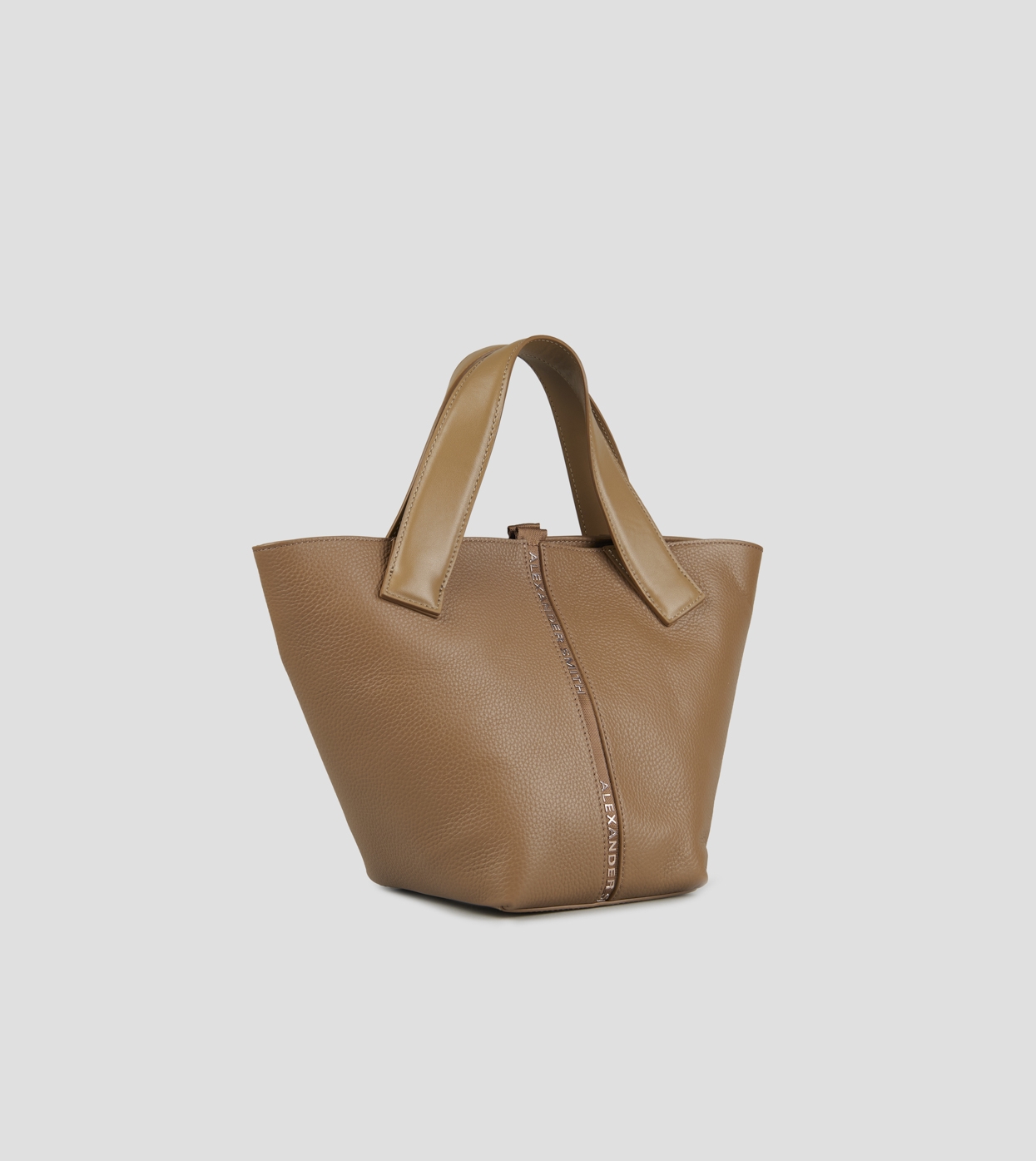 LAUREN is a shopper bag that combines functionality and style in a contemporary and bold design. The geometric lines and central logo detail define a strong yet versatile character, perfect for completing any look with a modern touch.