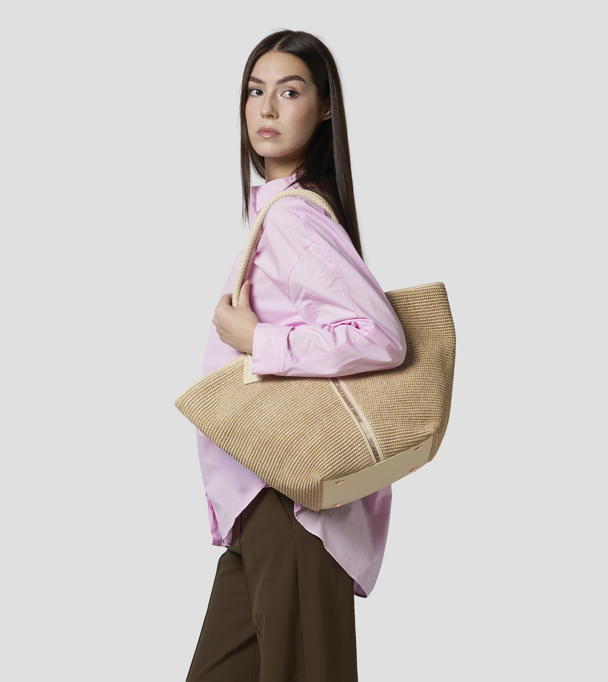 Lauren Large shoulder bag in beige raffia and woven handle
