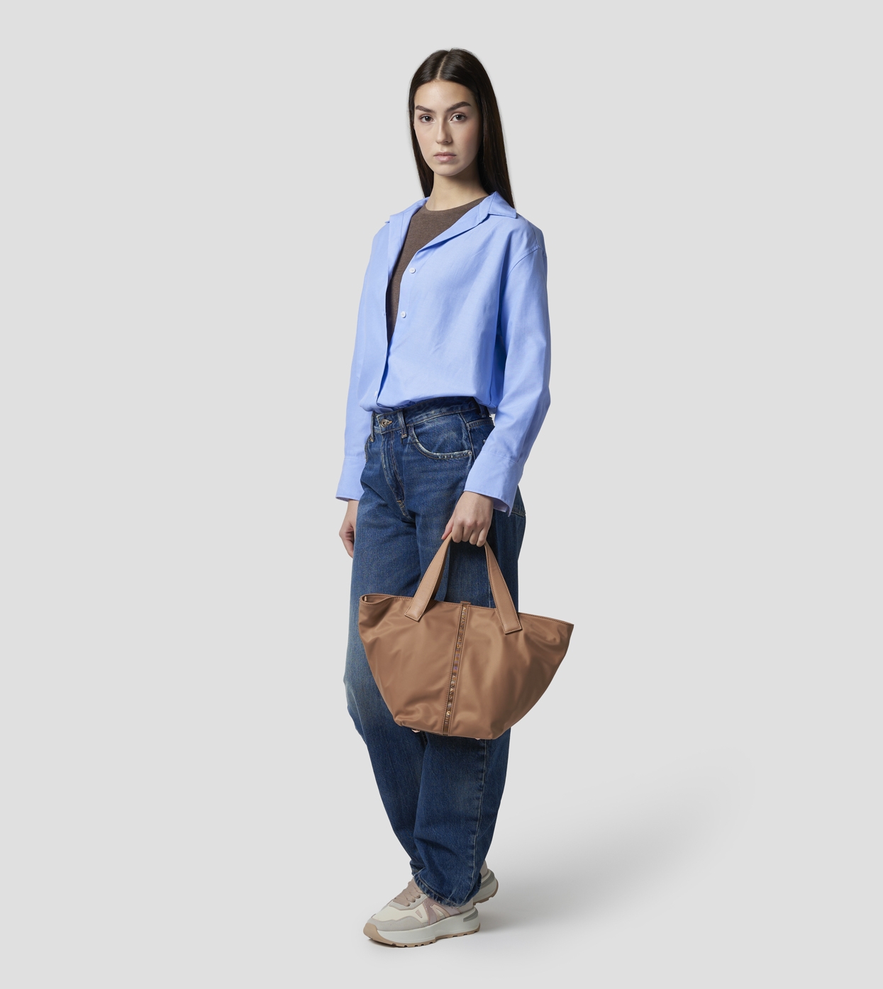 LAUREN is a shopper bag that combines functionality and style in a contemporary and bold design. The geometric lines and central logo detail define a strong yet versatile character, perfect for completing any look with a modern touch.