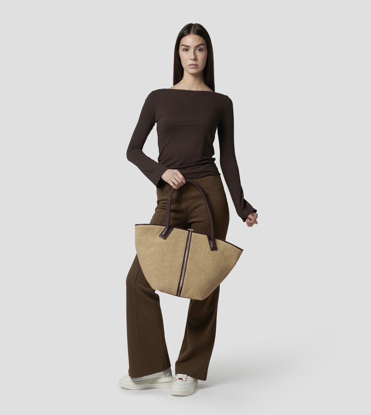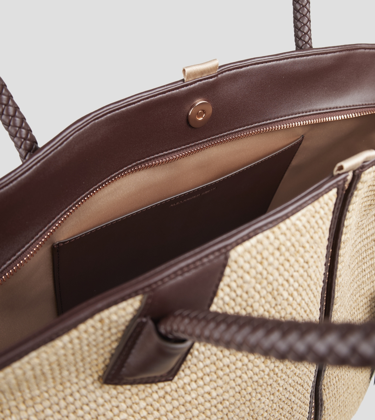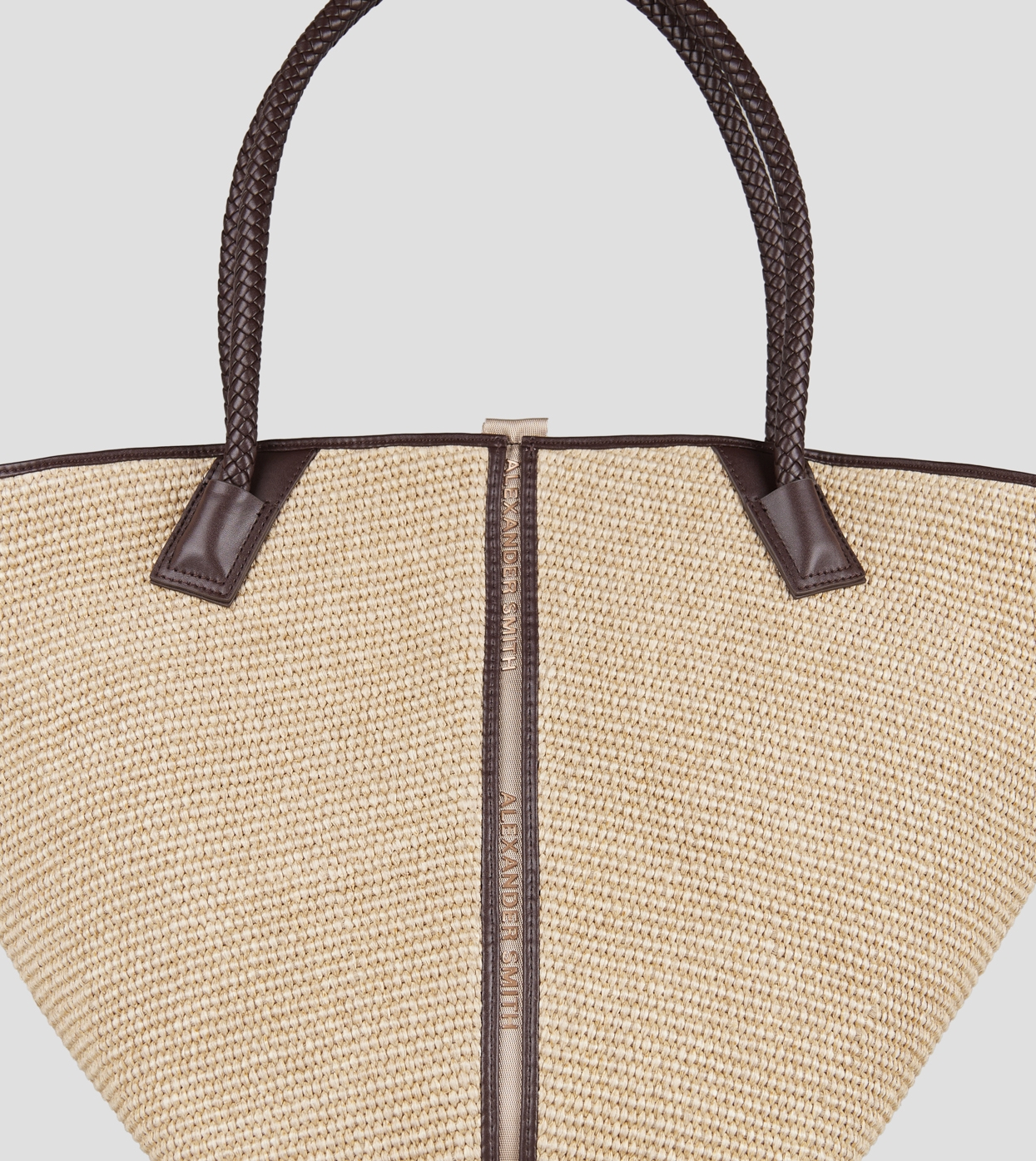 Lauren Large shoulder bag in beige rafia and brown woven handle