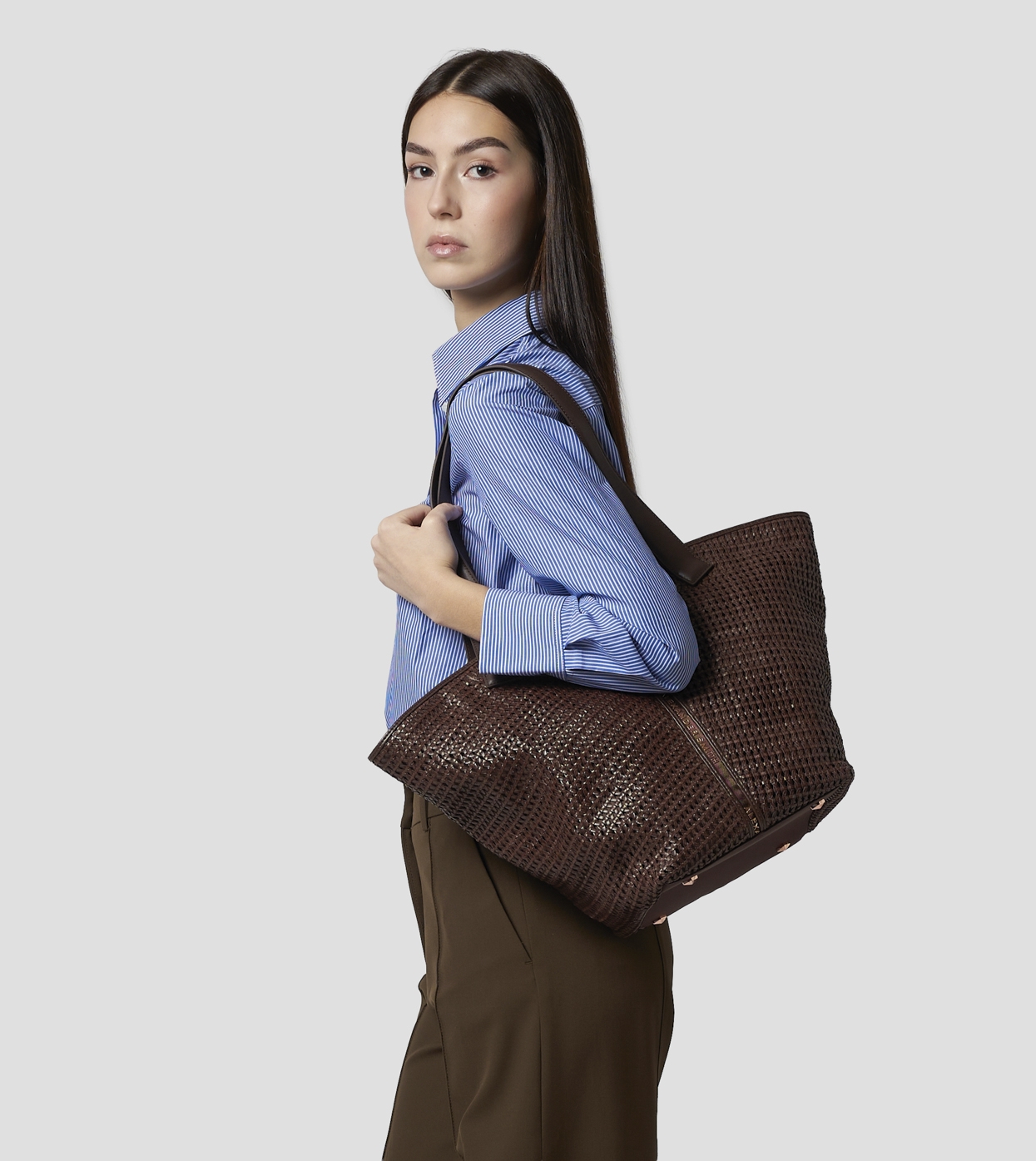 Lauren Large shoulder bag in brown woven