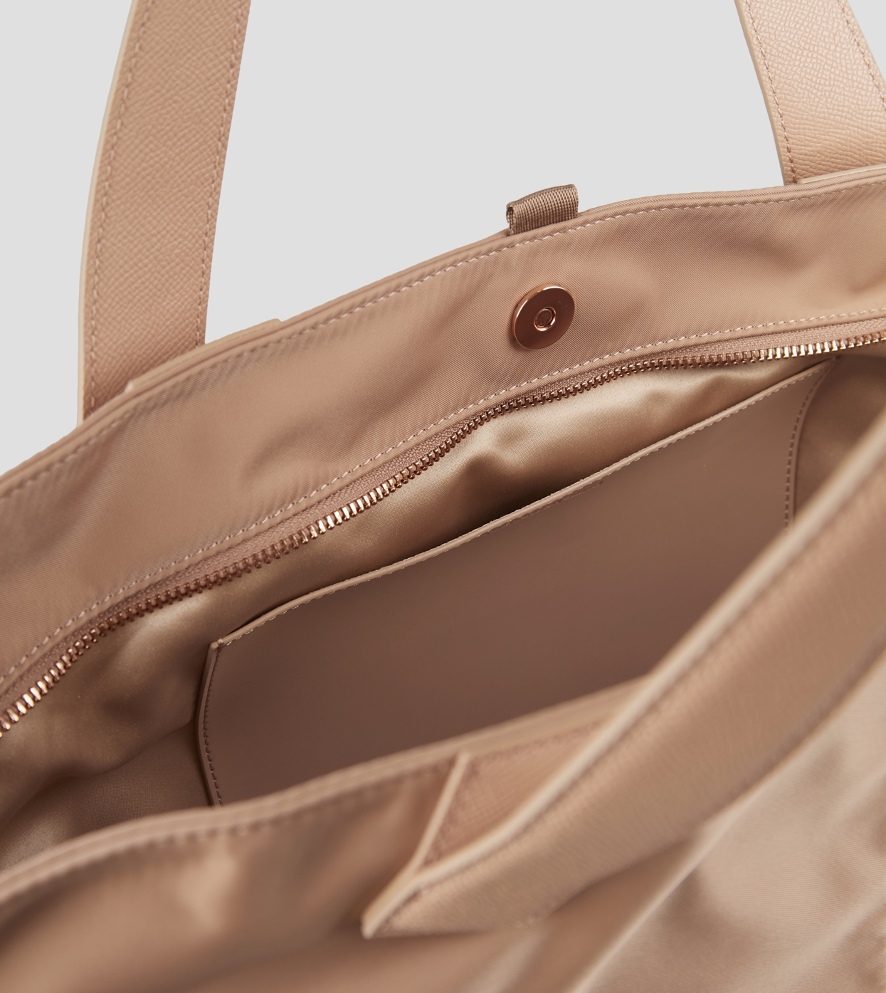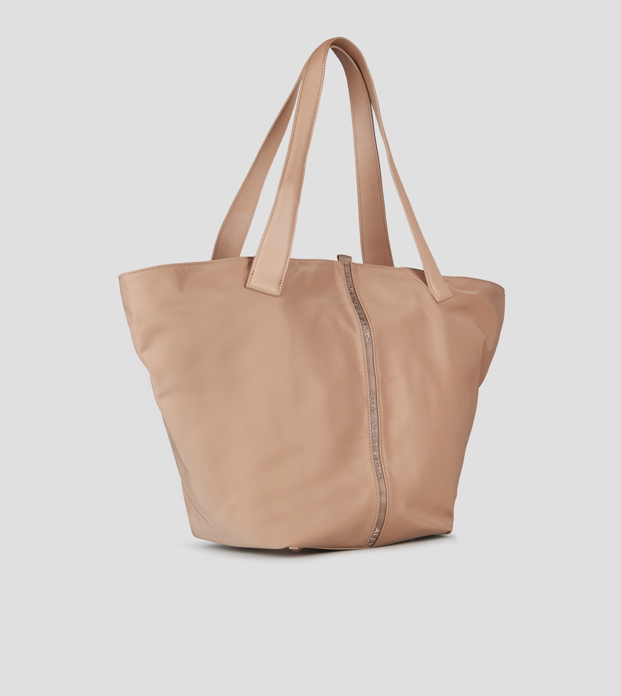 LAUREN is a shopper bag that combines functionality and style in a contemporary and bold design. The geometric lines and central logo detail define a strong yet versatile character, perfect for completing any look with a modern touch.