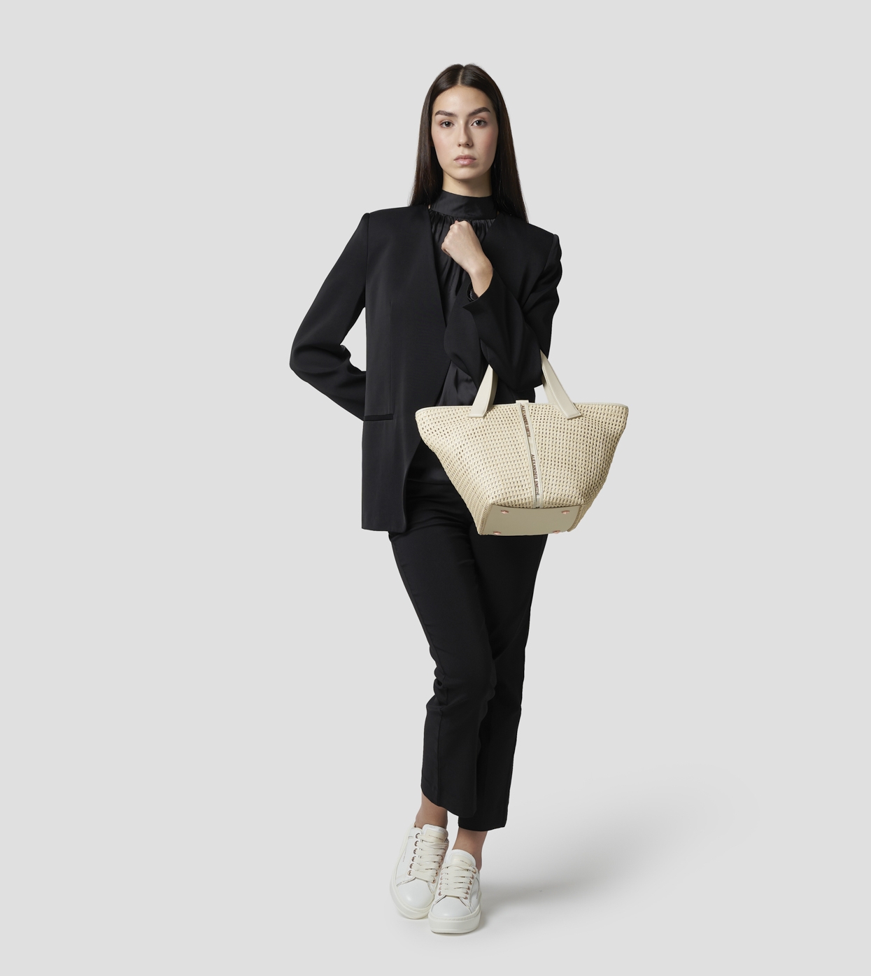 LAUREN is a shopper bag that combines functionality and style in a contemporary and bold design. The geometric lines and central logo detail define a strong yet versatile character, perfect for completing any look with a modern touch.
