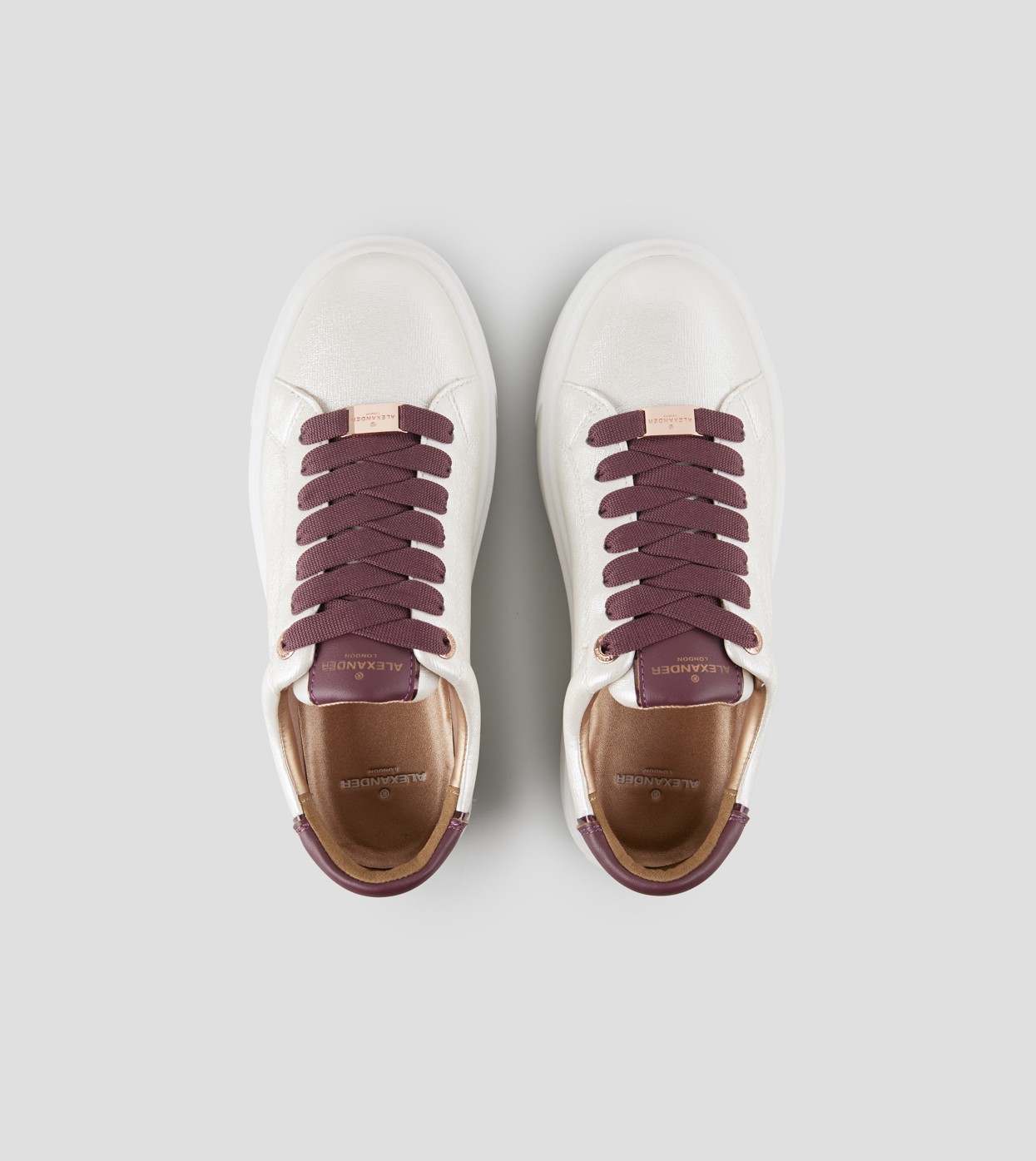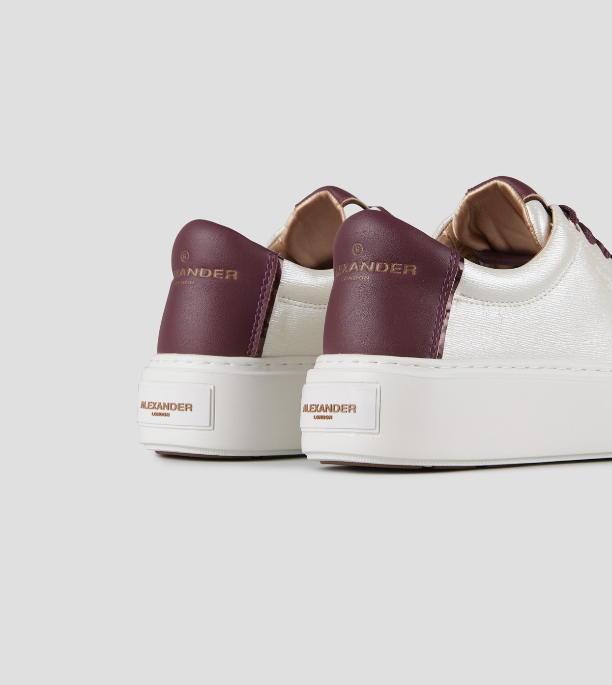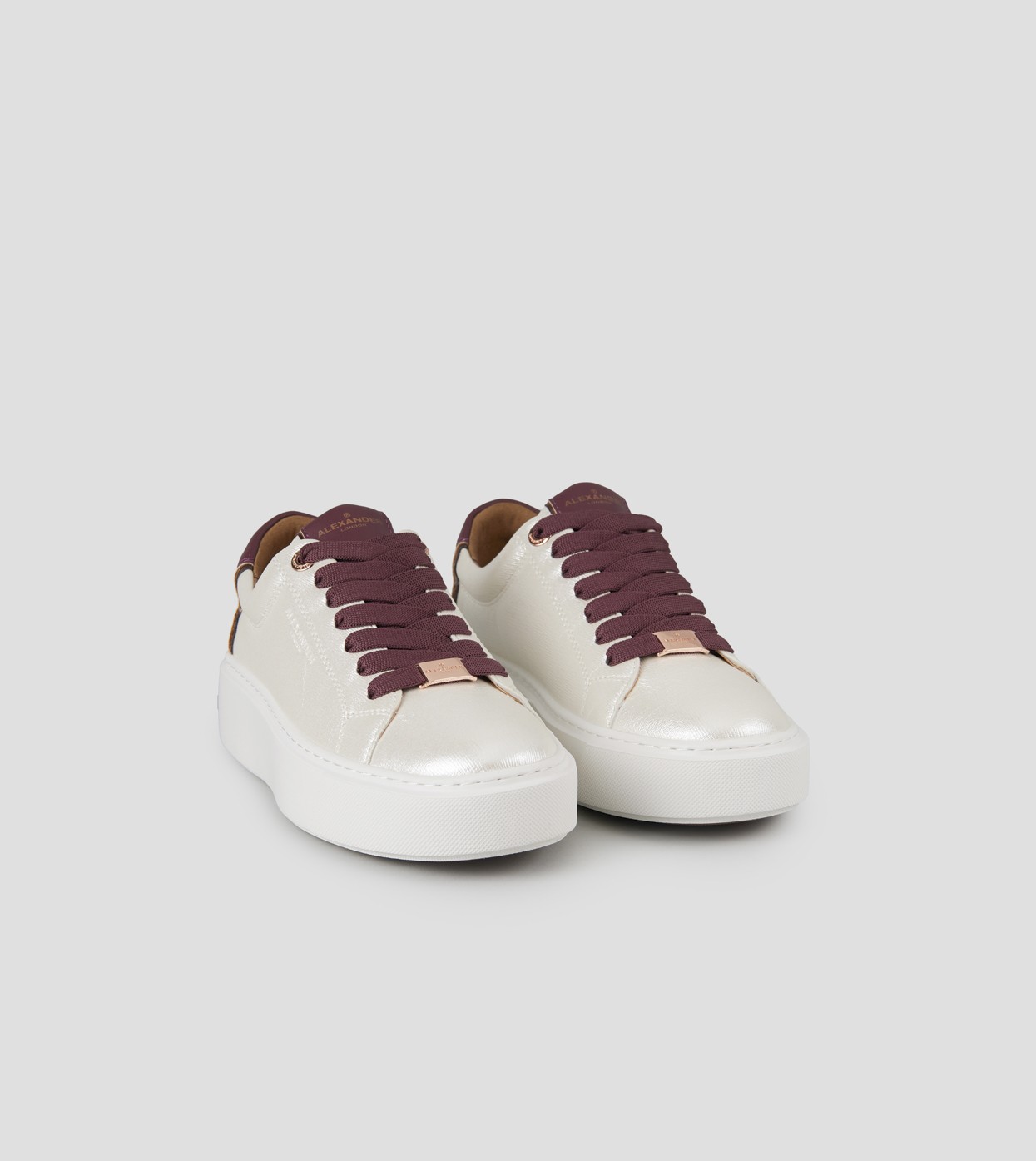 London High Woman in white pearly bottalata leather and bordeaux heel