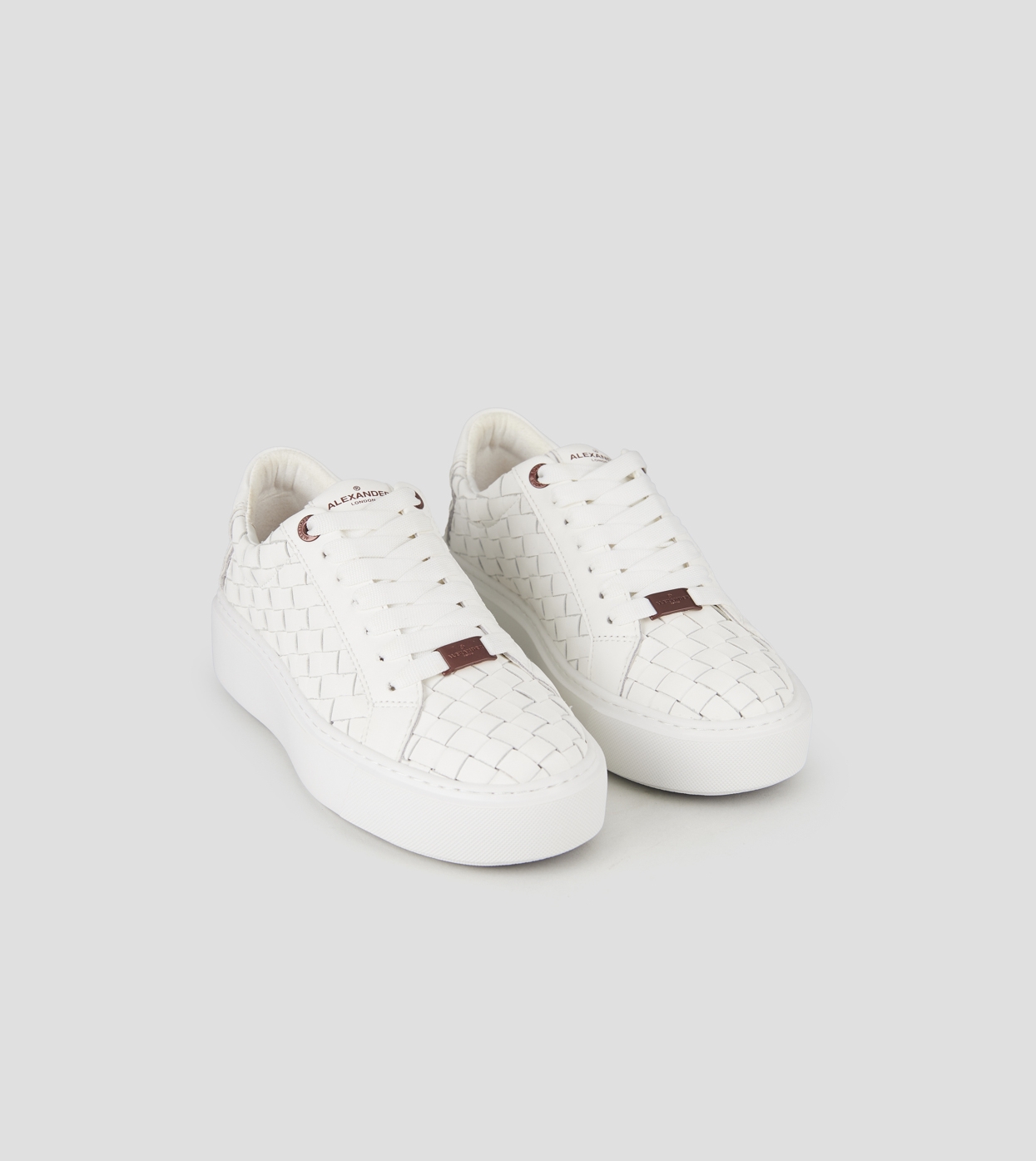 London Woman in white woven leather
