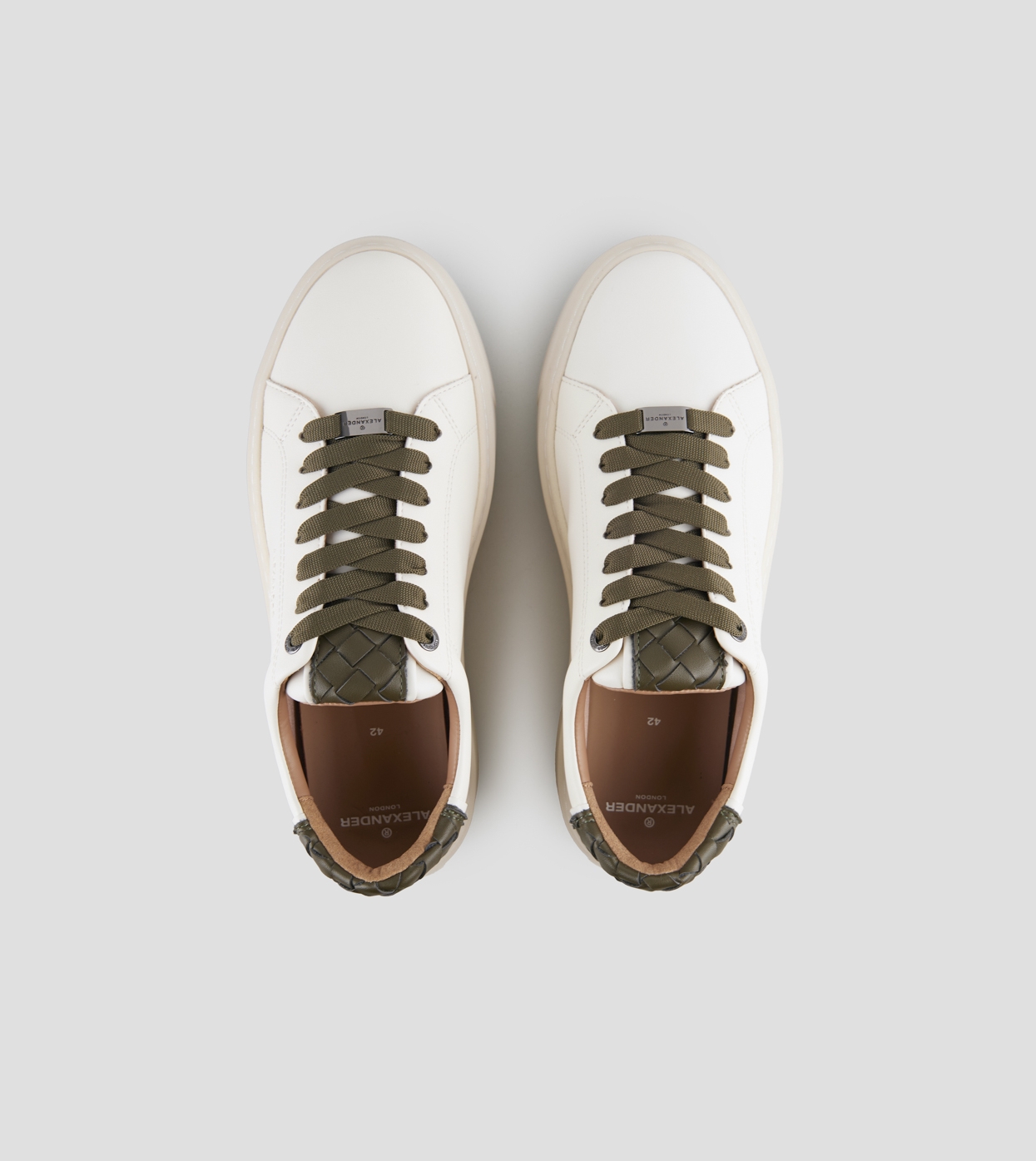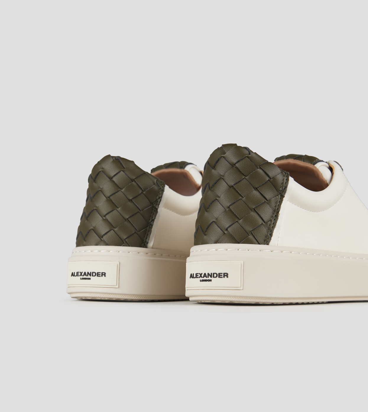 London Man in white leather and woven green leather back