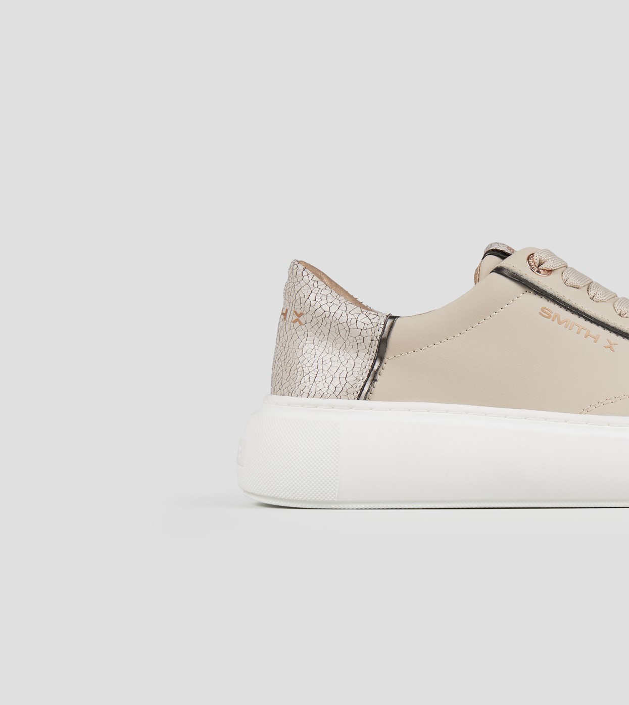 Clean lines, balanced volumes and a touch of informal elegance: Pearl is the sneaker designed for those who love to stand out with simplicity. The neutral-toned upper and contemporary sole design make it perfect for any look, from casual to sophisticated. Comfort and style come together in a versatile, discreet and refined model.