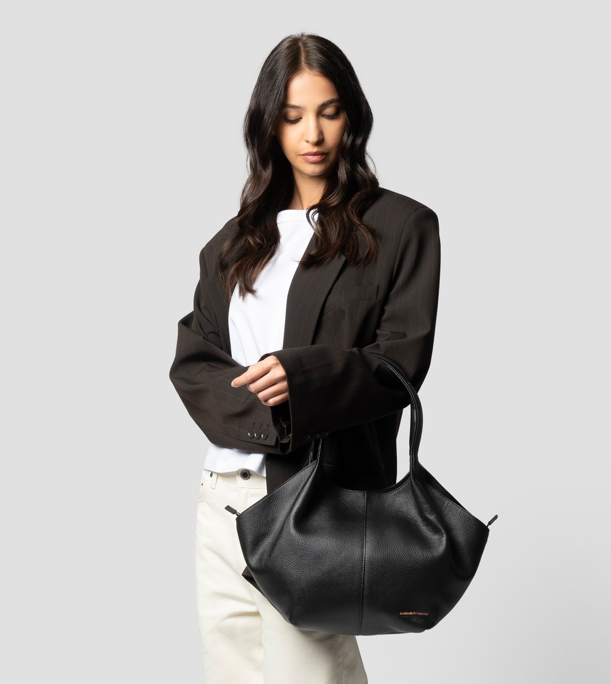 RACHEL is the shopper bag that strikes the perfect balance between comfort and style with its fluid shapes and generous proportions. The minimalist design enhances its wide and welcoming silhouette, ideal for accompanying every moment of the day with relaxed elegance.