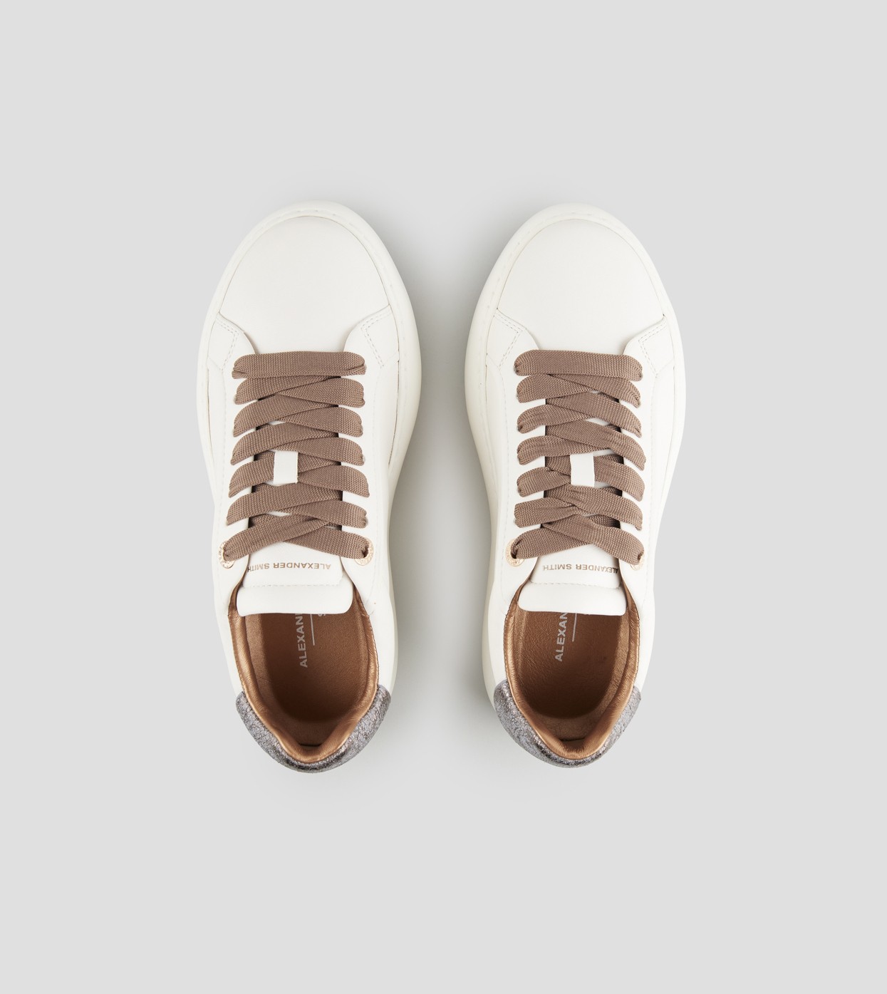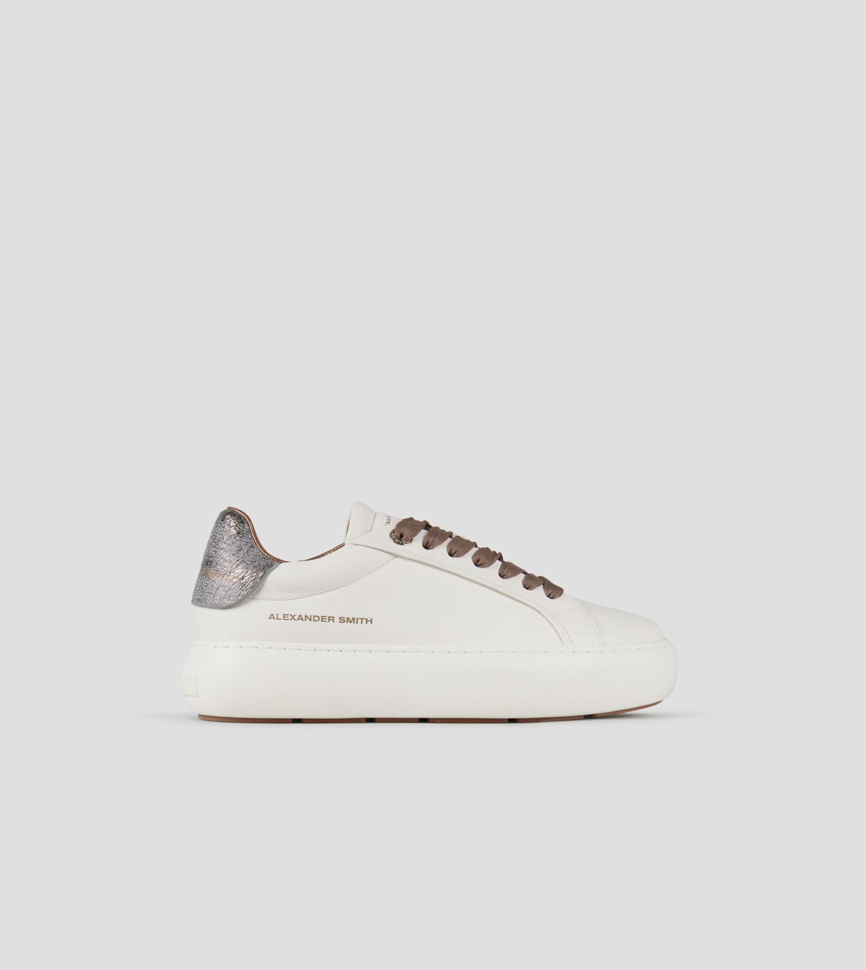 Soho Woman in soft white leather with bronze laminated cracklè heel