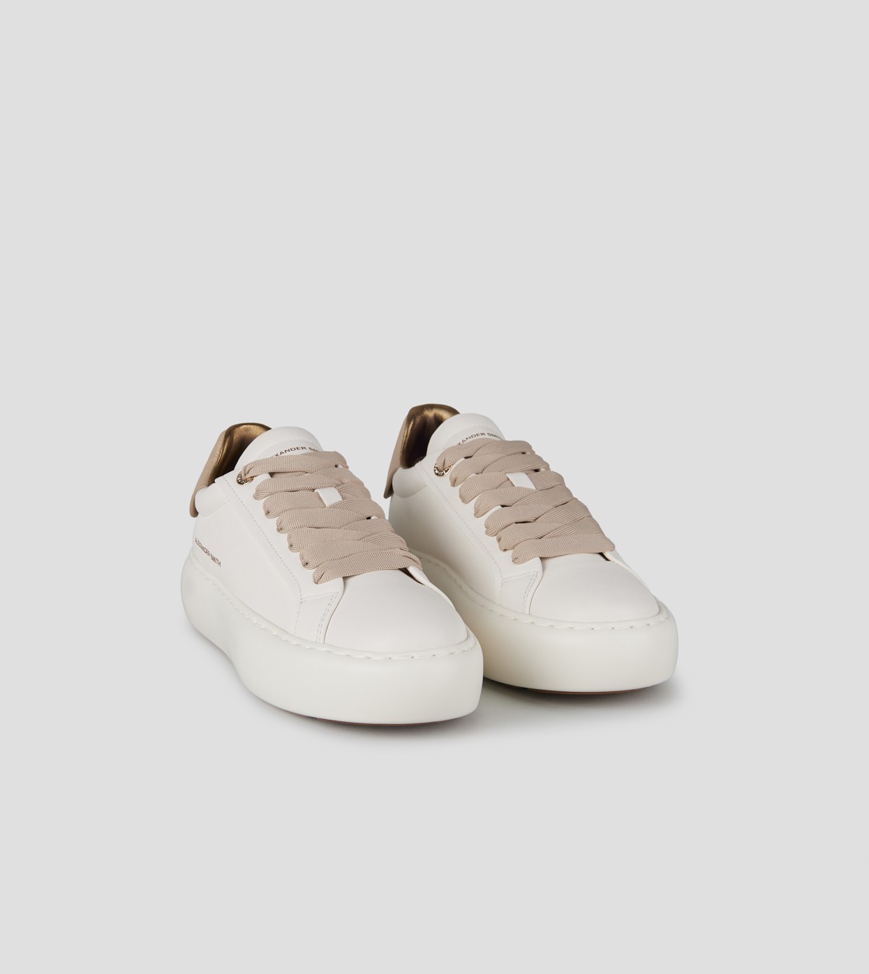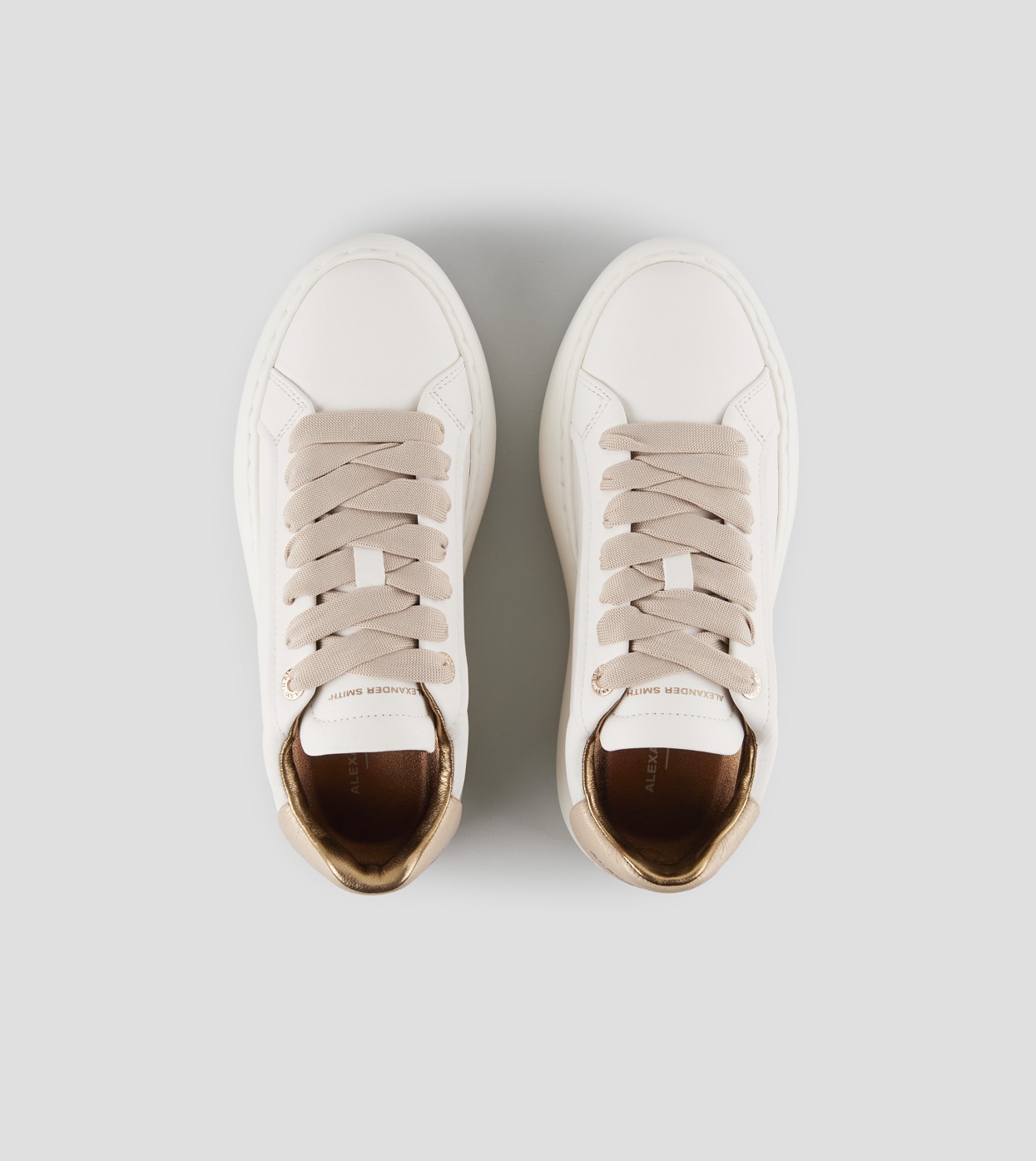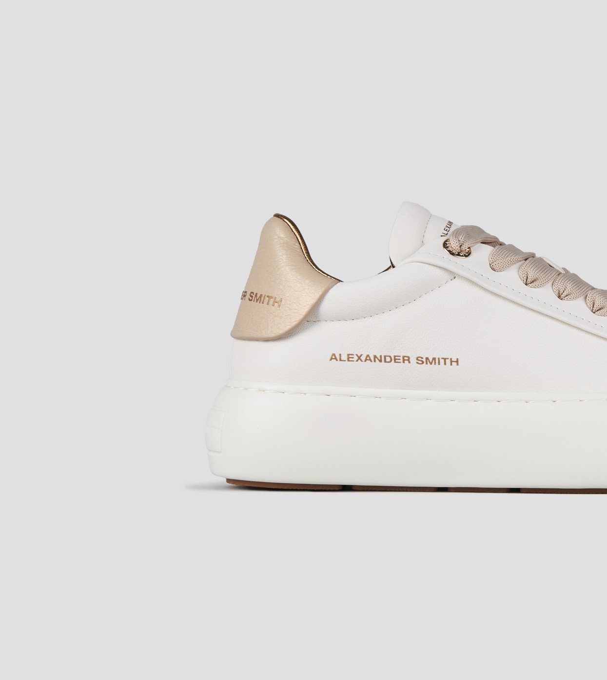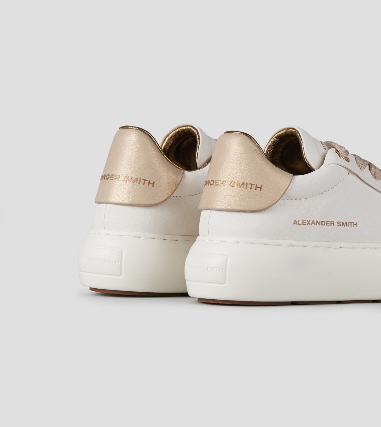 Soho Woman in smooth white leather with gold laminated cracklè heel