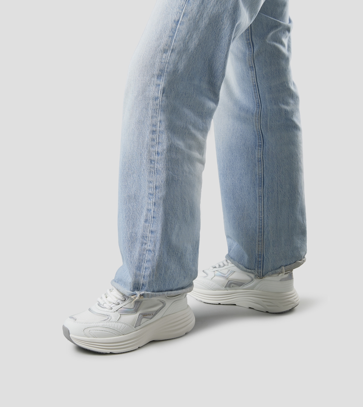 Designed for those who never stop. STORM combines contemporary design and absolute comfort thanks to its dynamic silhouette and ultra-light oversized sole. The technical details and fluid lines evoke the energy of continuous movement - perfect for tackling every day with style and character.
