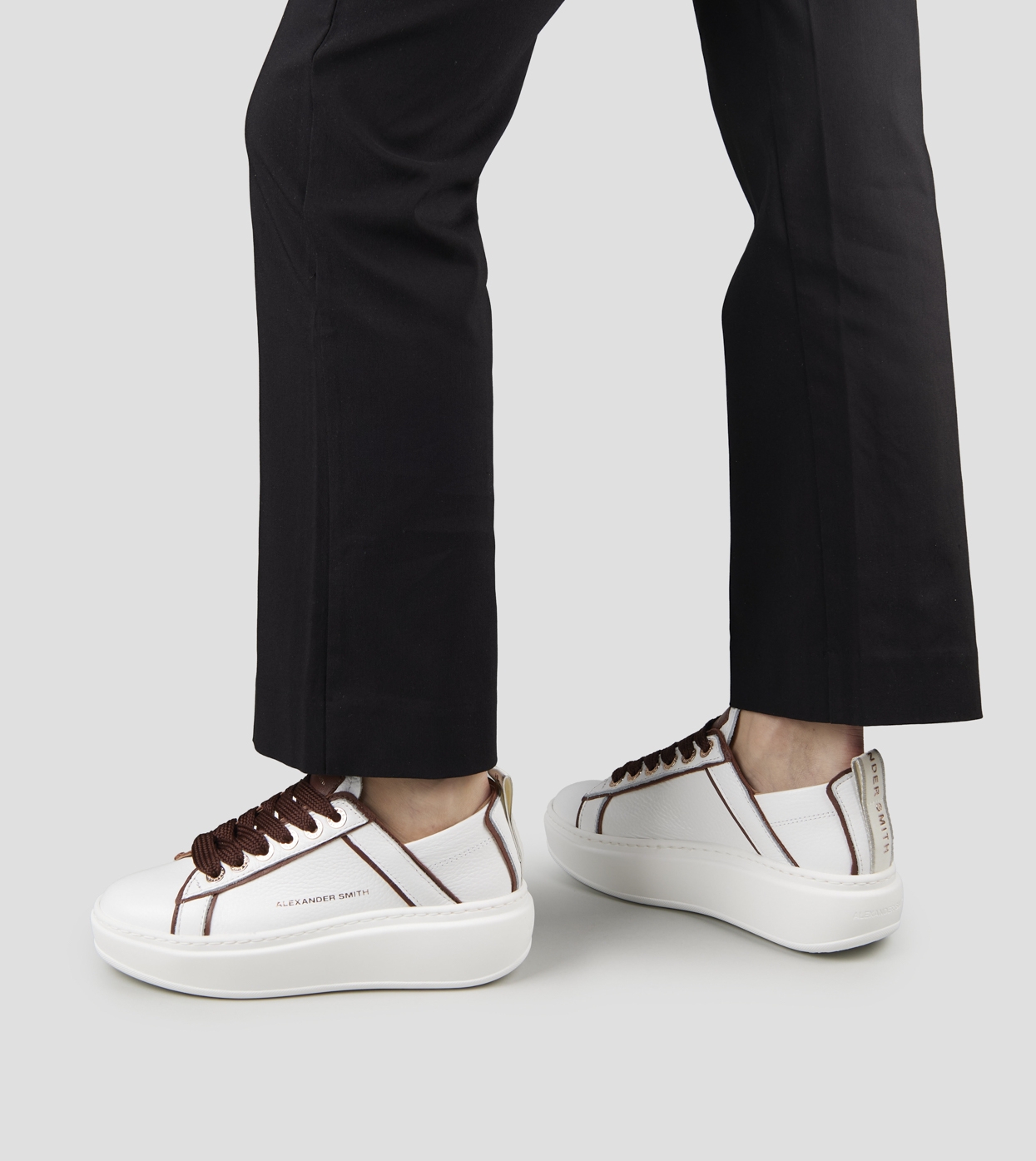 Wembley High Woman in white leather and details in dark brown