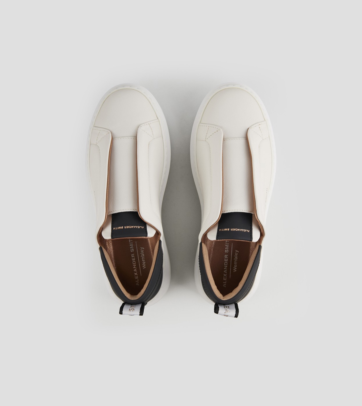 The iconic Wembley evolves in this slip-on variant, which retains the style and design of the original model with the freshness of a new lace-free interpretation.
