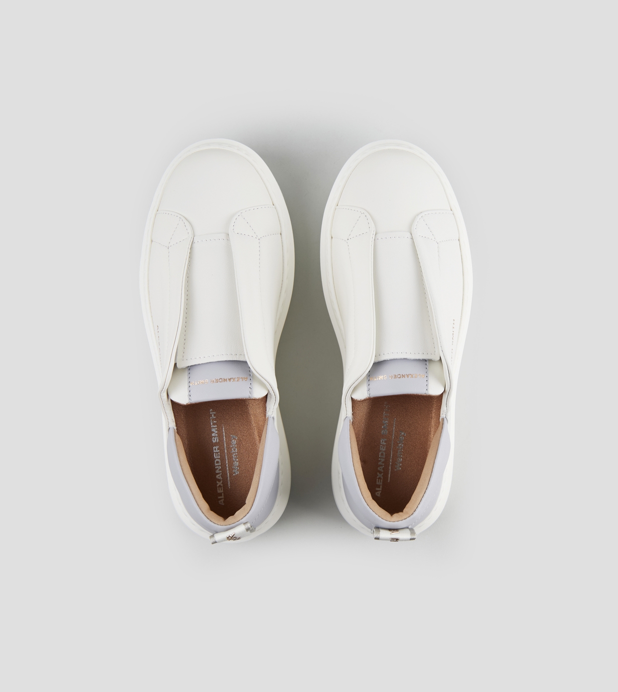 The iconic Wembley evolves in this slip-on variant, which retains the style and design of the original model with the freshness of a new lace-free interpretation.
