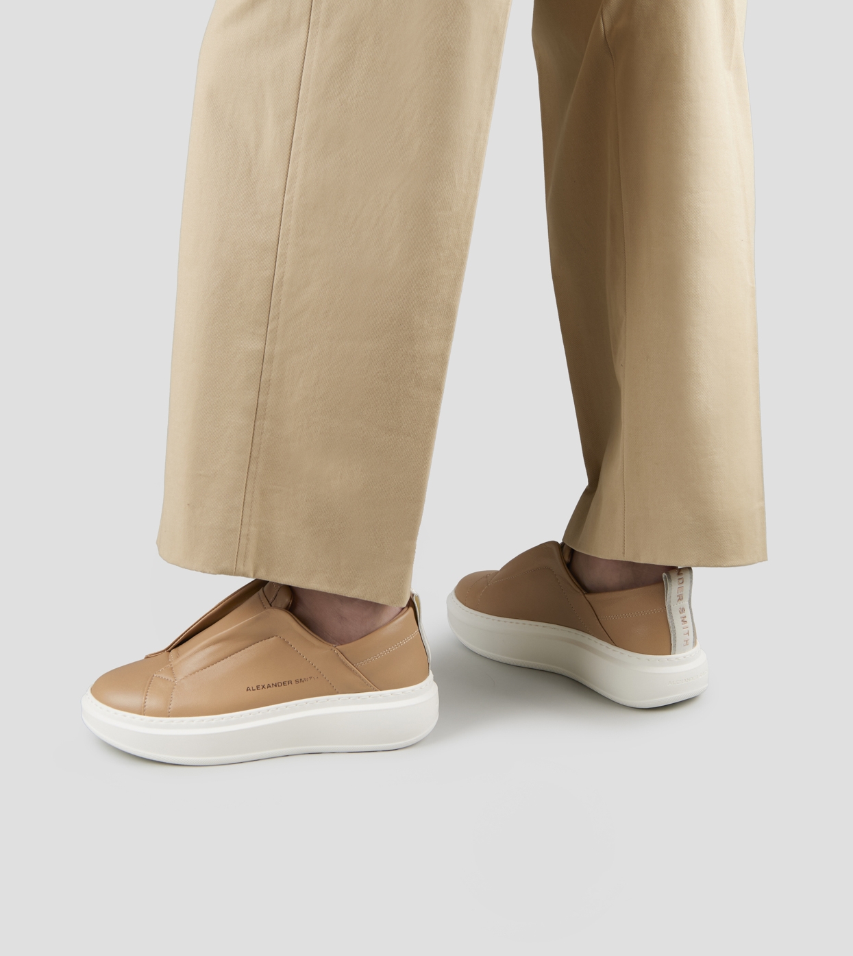 The iconic Wembley evolves in this slip-on variant, which retains the style and design of the original model with the freshness of a new lace-free interpretation.