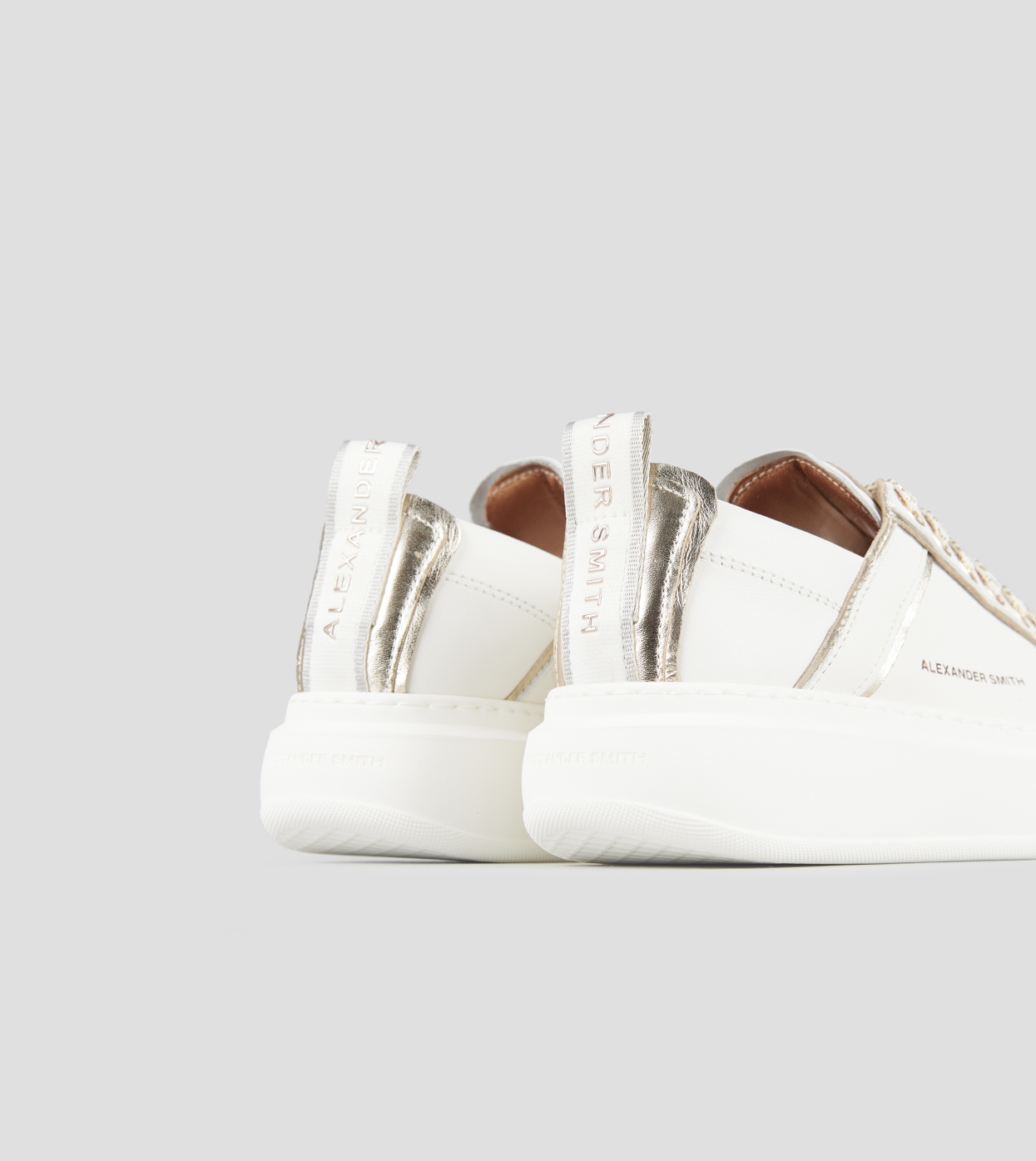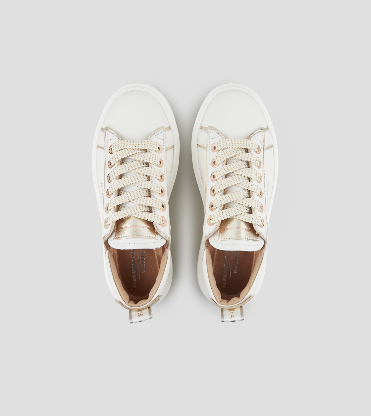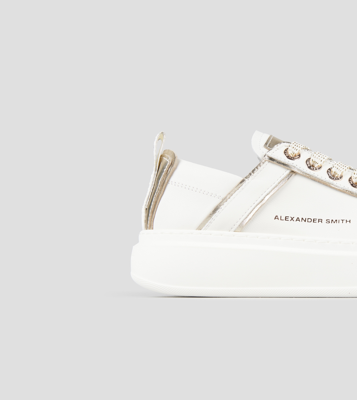 Wembley Woman Deconstructed in white leather and gold laminated details