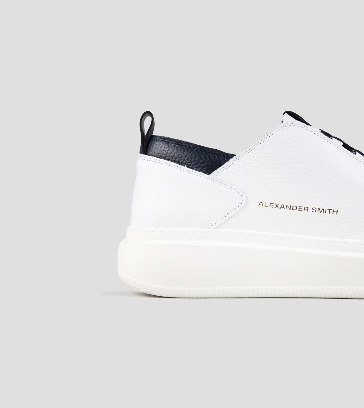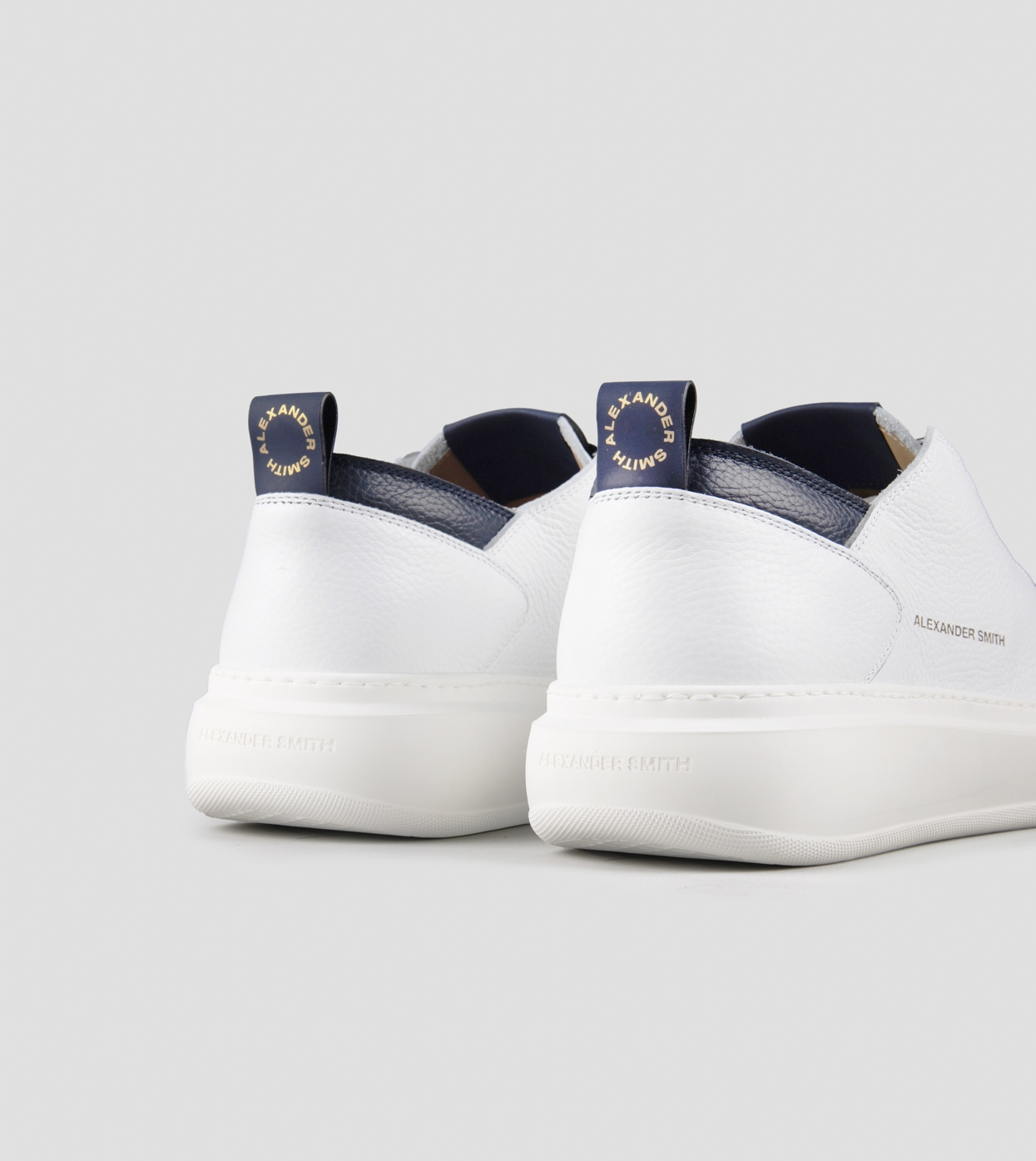 Wembley Man Deconstructed in white tumbled leather and blue details
