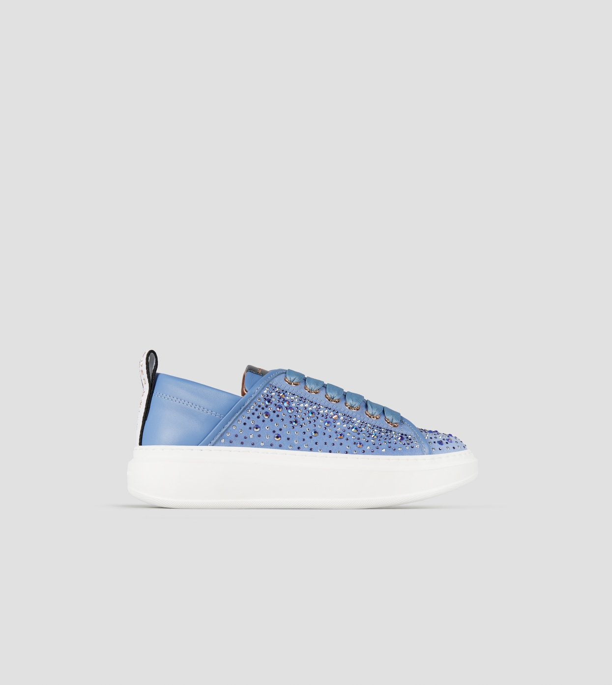 Wembley Woman in azure leather and rhinestones